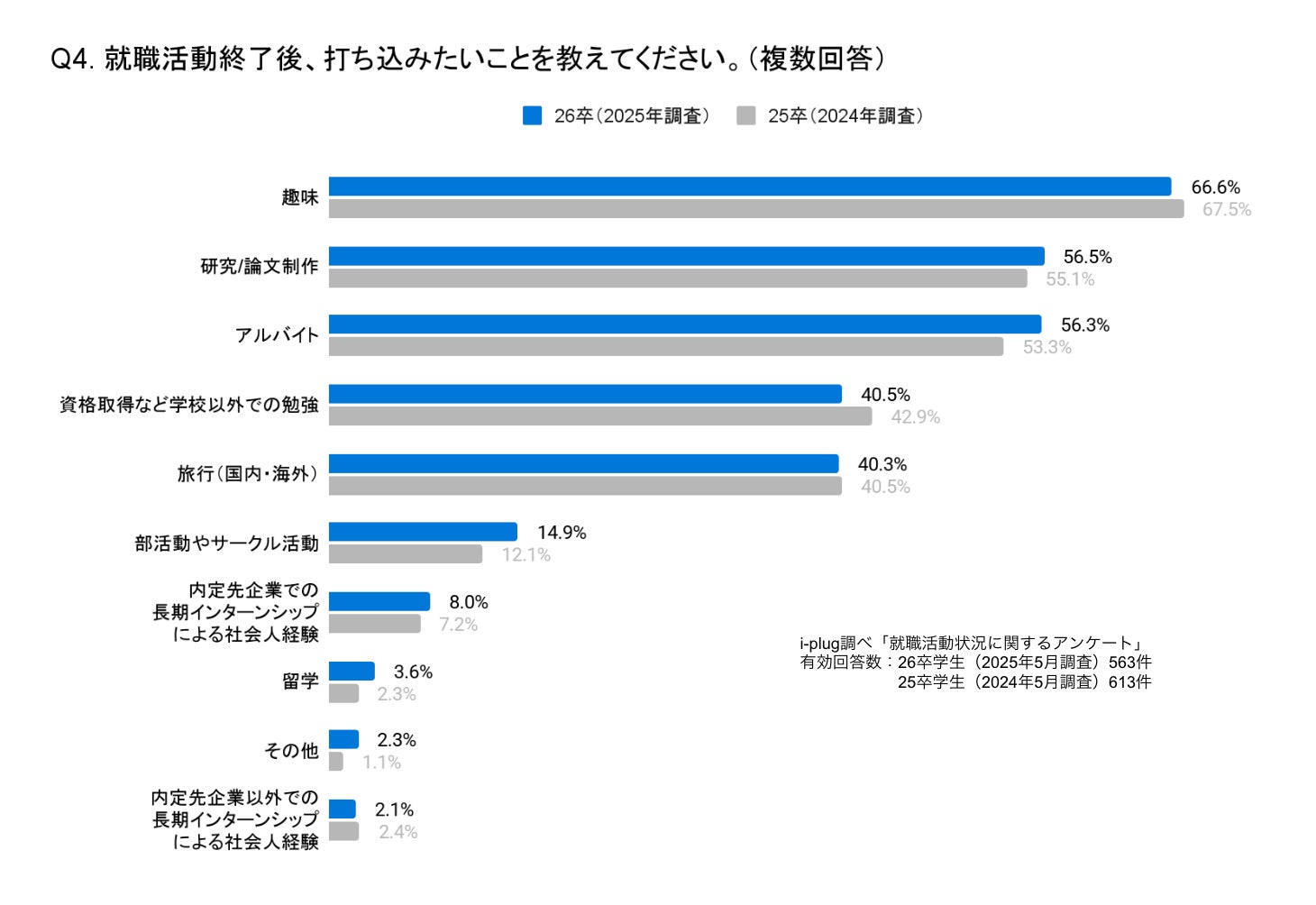 Q4. 就職活動終了後、打ち込みたいことを教えてください。(複数回答)