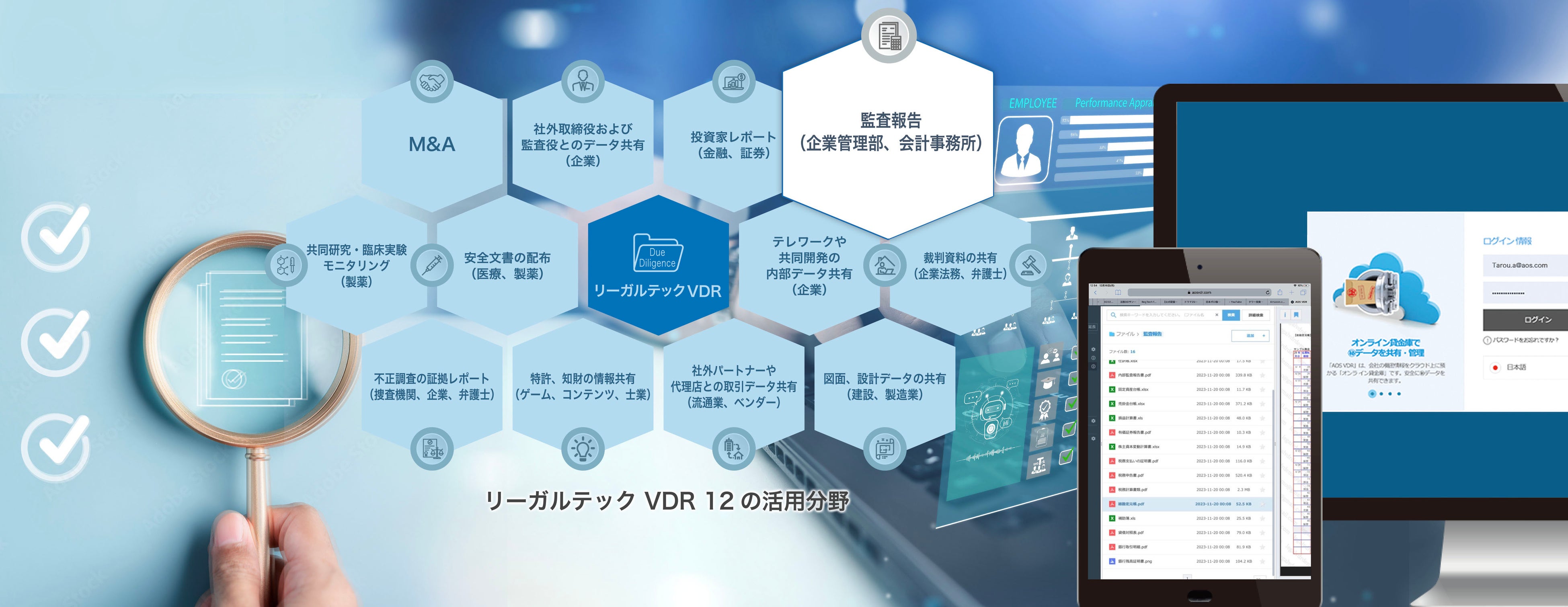 「リーガルテックVDR」は大規模なデータセットの保管と管理を容易にし、データの検索と整理を迅速に行うことができます。