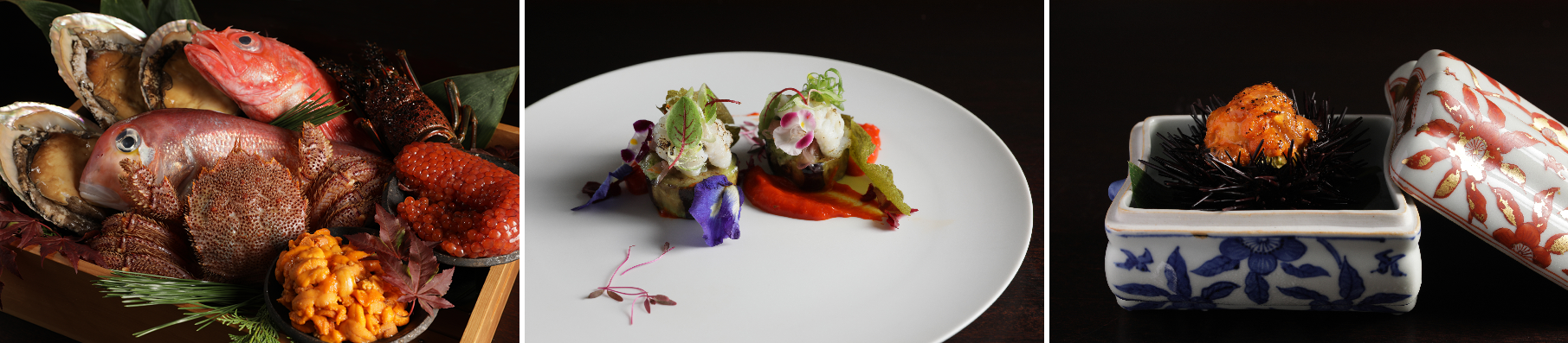 リニューアルする「祇󠄀園びとら、」は、西に鴨川と対岸の先斗町、南に白川と桜並木が広がる絶景の前にオープン。レストランへ向かう道中から京都の風情を楽しみ、フランス料理の技法に和を取り入れた京フレンチのコースをご堪能いただけます。温故知新の概念から生まれた和と洋が混ざり合うオリジナル料理は、地産地消、旬産旬消にこだわった厳選食材とともに、料理のベースとなるお出汁から大切につくり上げており、香り、音、目見麗しい芸術的な一皿一皿でその繊細な味わいを五感で愉しんでいただけます。