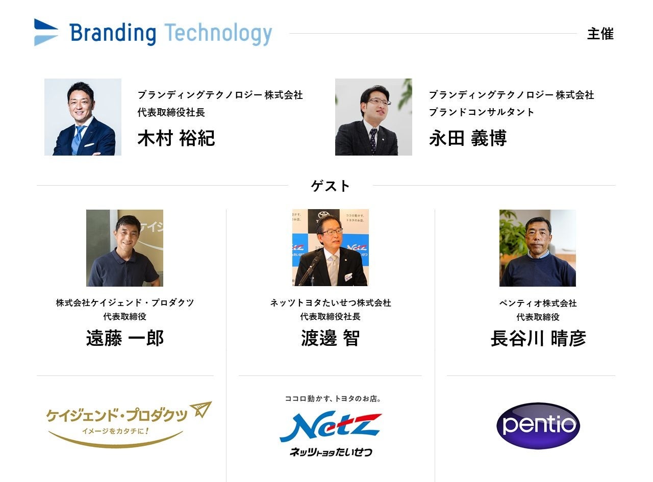 ブランディングテクノロジー株式会社(代表取締役社長:木村 裕紀、本社:東京都渋谷区、証券コード7067、以下当社)は、リブランディングを検討されている中小企業様向けに「リブランディングした企業4社が語るプロジェクトの裏側」セミナーを開催します。