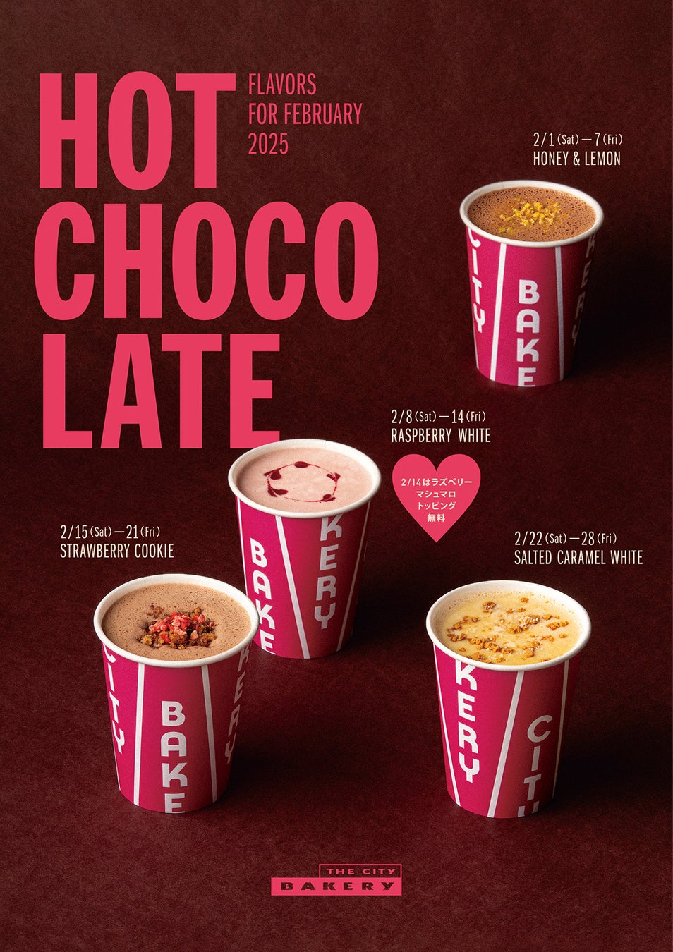 2月はホットチョコレート!THE CITY BAKERY「HOT CHOCOLATE FESTIVAL 2025」バリスタ考案、4種の限定フレーバーが週替わりするホットな4週間。2/1(土)スタート!