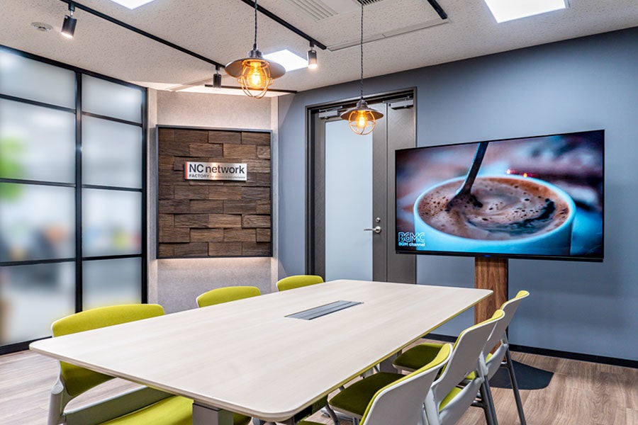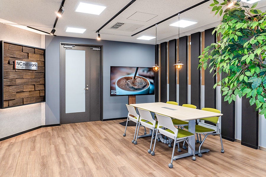 株式会社NCネットワークファクトリー様は、大手自動車・電機メーカーから、試作・開発部品や量産部品の生産受託を行い、ものづくりを支えている企業です。今回、オフィス移転をきっかけにオフィスデザインのご要望を頂き、都会的で洗練されたカフェをイメージしたオフィスを創りました。