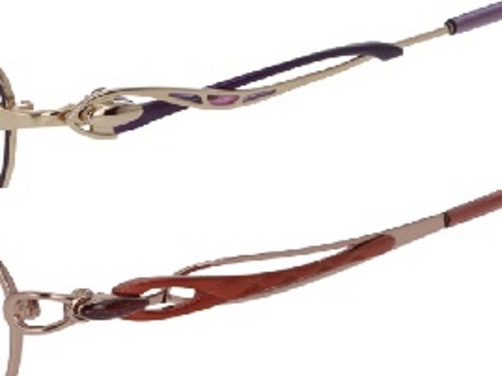 金属素材と樹脂素材の異素材からなる曲線が立体的に交差しており、やわらかくお顔にフィットする機能性があるフレームになっています。テンプル(ツル)にはステンド七宝を施し、より彩り豊かな印象を与えることができます。