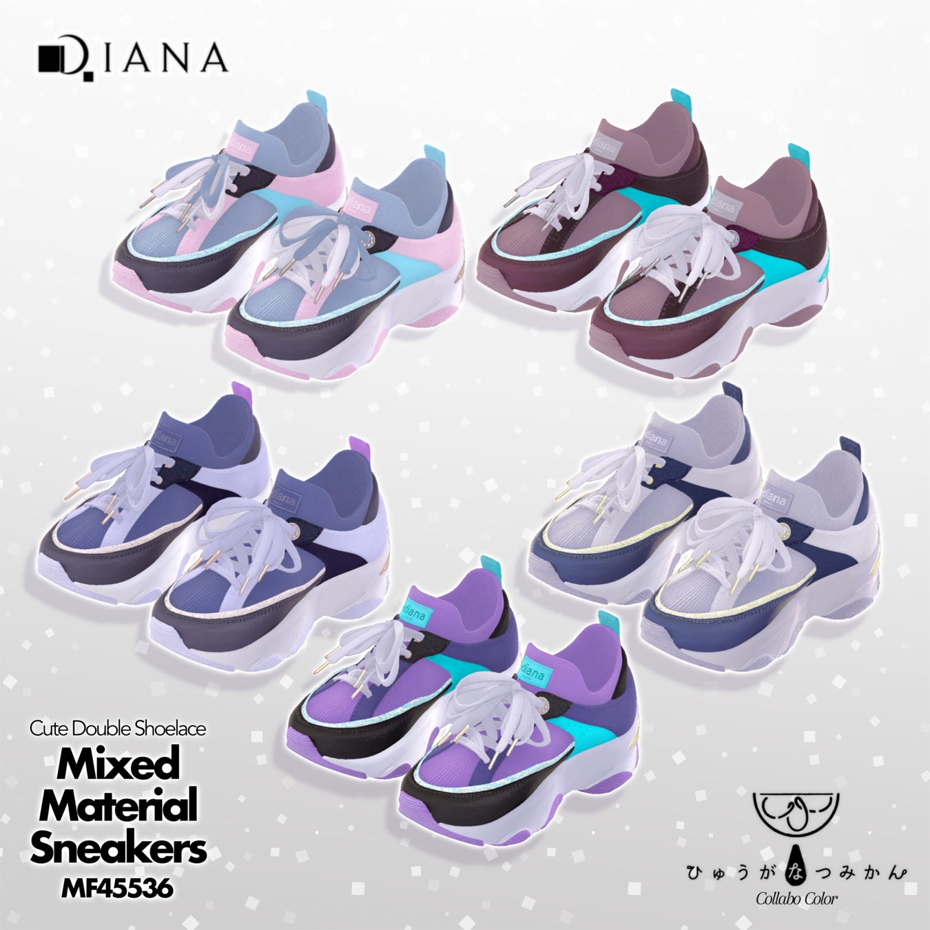 VRChat向け3Dモデルの販売をしている人気ショップ「ひゅうがなつみかん」とダイアナの人気スニーカーブランド「+diana」のコラボアイテムです。ひゅうがなつ氏自ら各アバターのイメージカラーをダイアナの靴のデザインに落とし込み、ダイアナが3Dモデルオリジナルのマテリアルを作成しました。