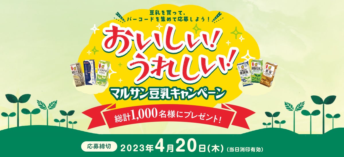 豆乳は良質な植物性たんぱく質を豊富に含んだヘルシーな飲料です。本キャンペーンをきっかけにして、みなさまの毎日の健康づくりにぜひマルサン豆乳をお役立ていただけますと幸いです。