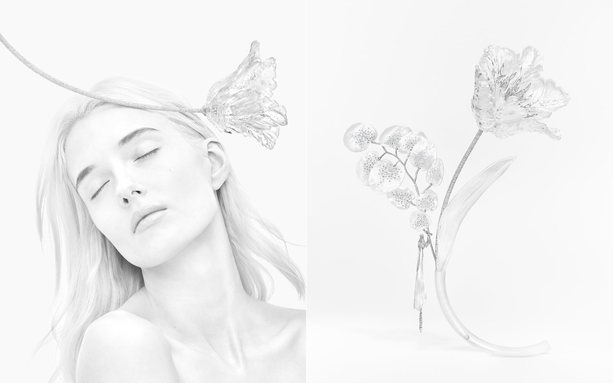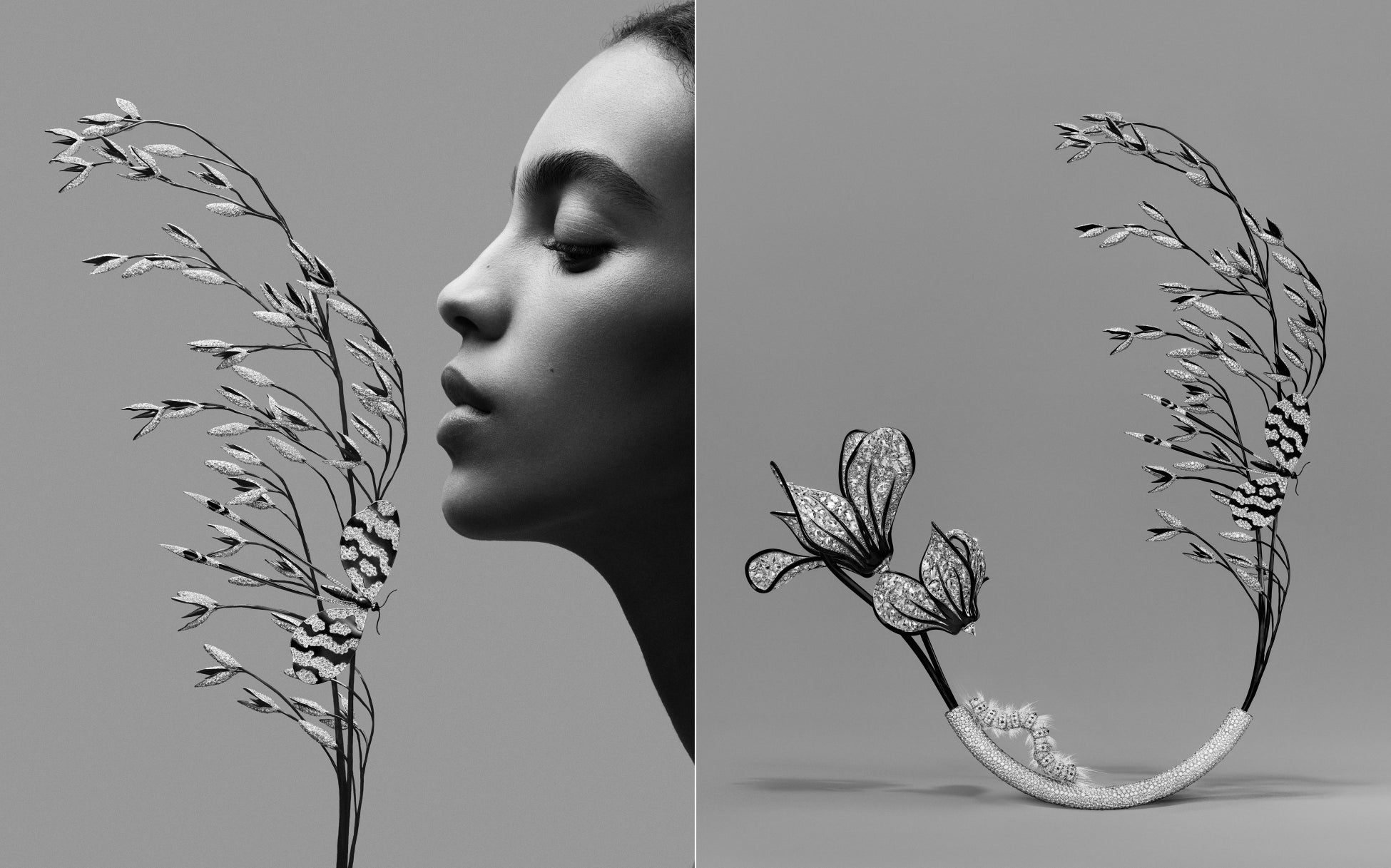 「新作 “カルト ブランシュ” コレクションで、私は自然の美しさが色褪せる前に、その一瞬を捉え、ハイジュエリー作品に閉じ込めたいと考えました。6つのコンポジション作品は、自然界における植物などの生命のサイクルを象徴し、光から闇へと変化するその移ろいのプロセスは、自然がいかに儚く、尊い存在であるかを伝えます。全22点のハイジュエリーピースで構成されたコレクションは、私が永遠に結晶化させたいという願いを託した“かけがえのない一瞬”へのオマージュです。」