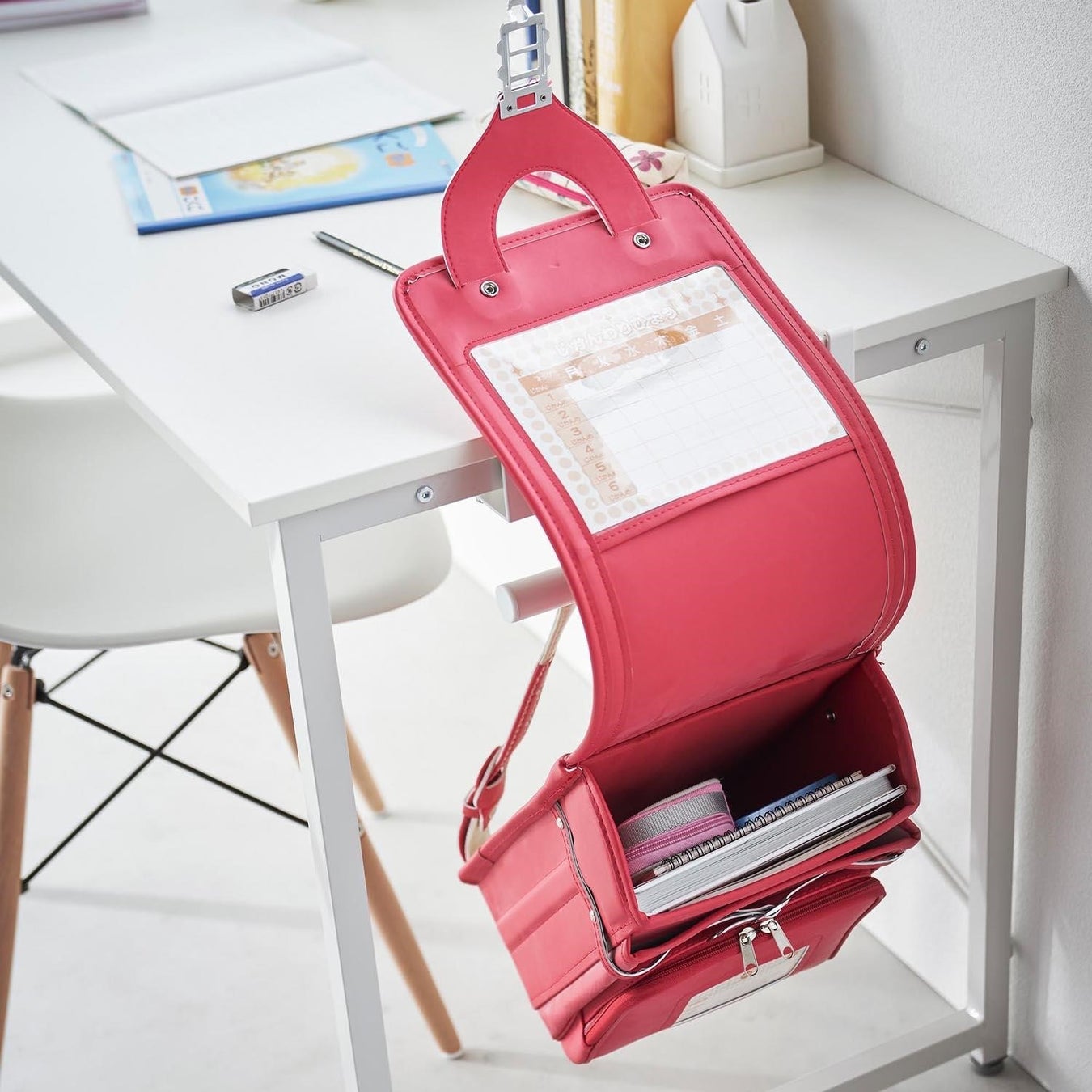 勉強する場所に合わせて、デスクやキッチンカウンターなどにランドセル収納を追加することができます。