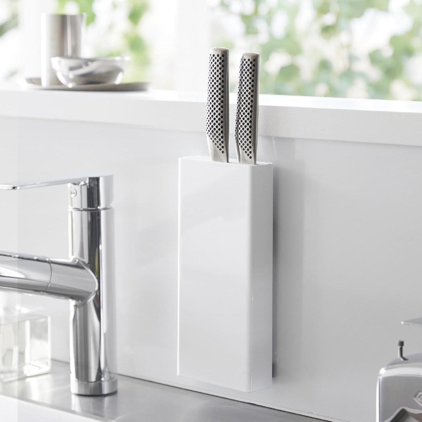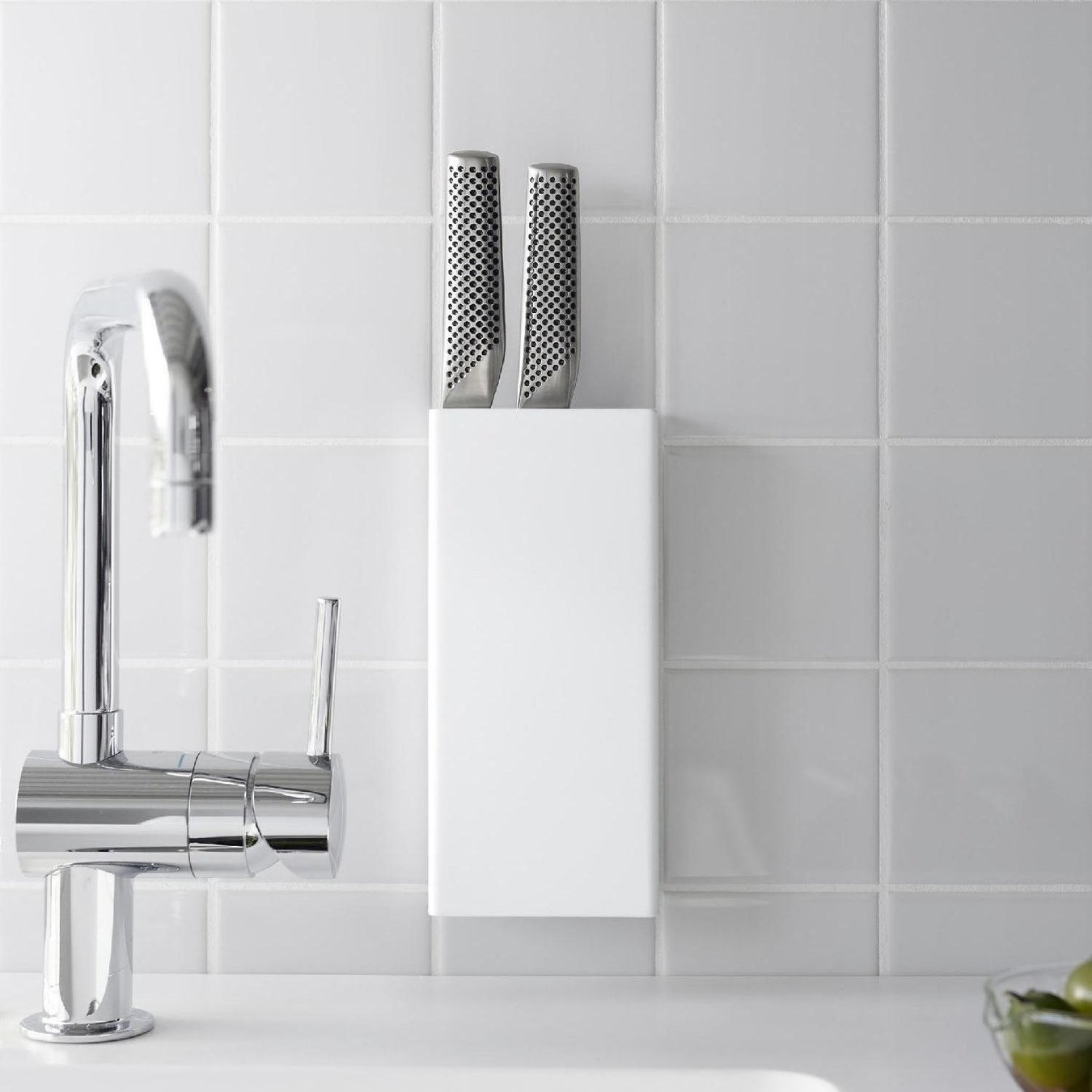 フィルムフックでお好みの位置に簡単に取り付けできる包丁ホルダー。