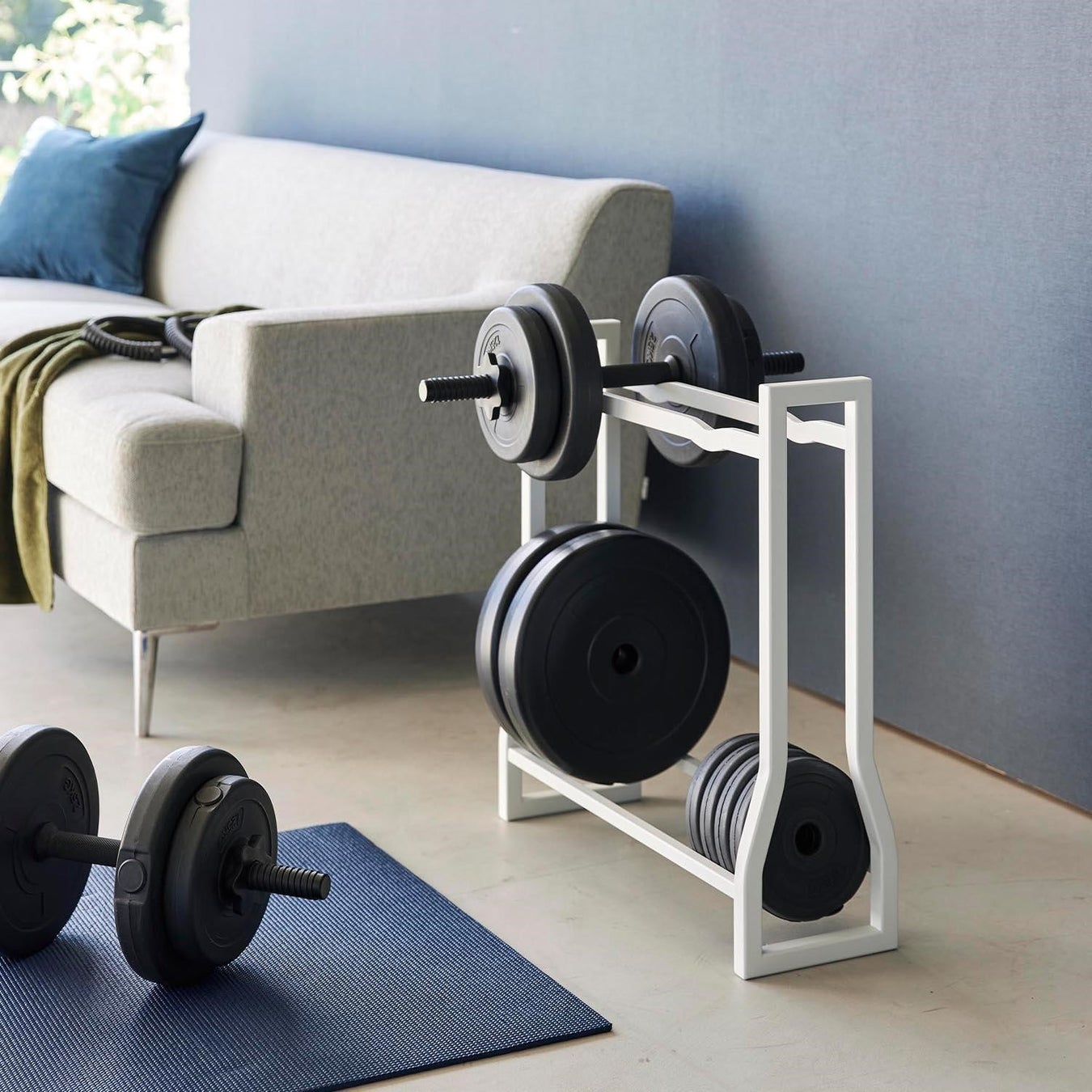 置き場所に困るダンベルセットをまとめて収納できるラック。
