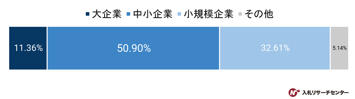 全省庁統一資格保有企業のうち、中小企業は50.90%、小規模企業は32.61%となりました。