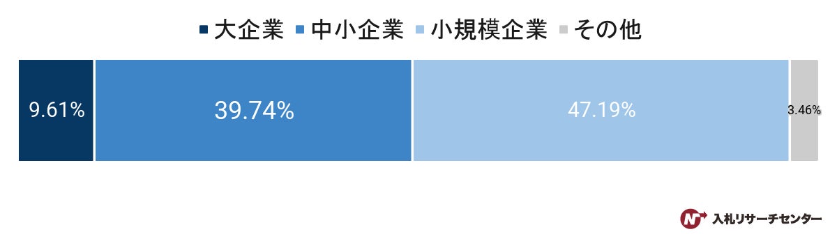 全省庁統一資格を新たに取得した新規企業のうち、中小企業は39.74%、小規模企業は47.19%となりました。