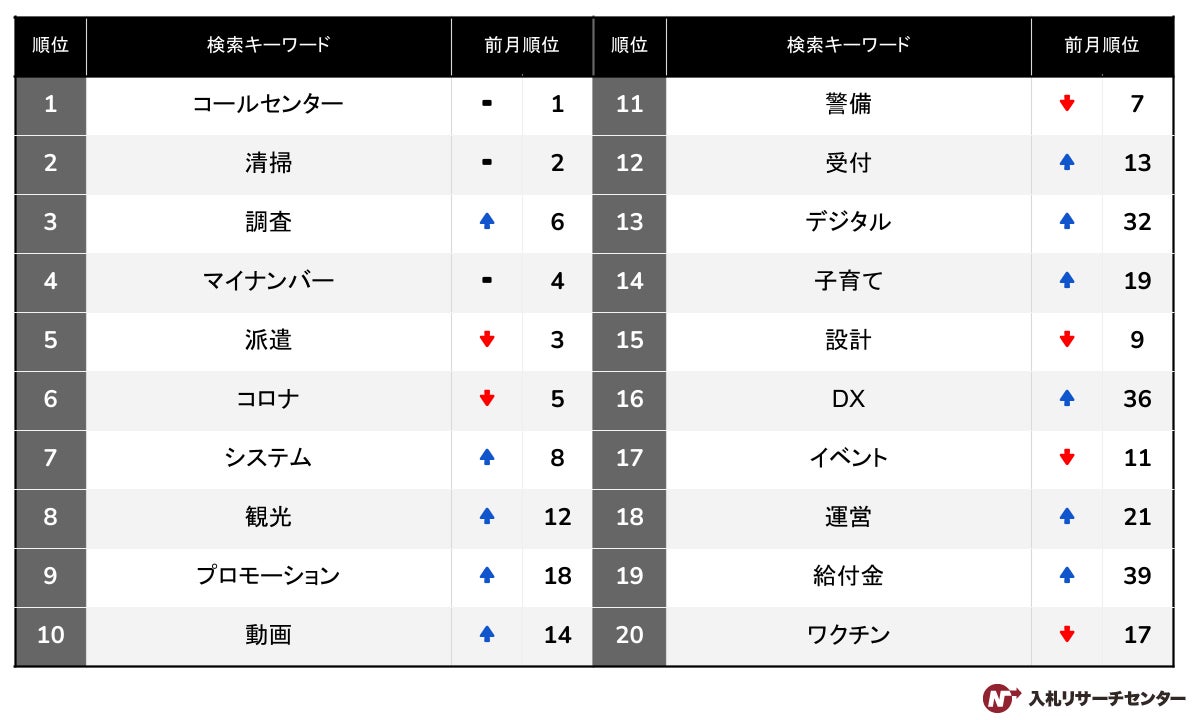 入札案件 検索キーワード 2023年3月度の第1位は、「コールセンター」となりました。