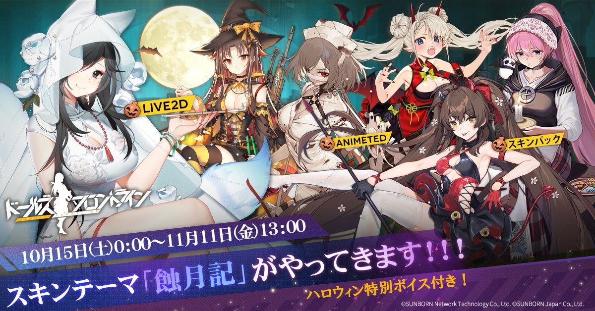 株式会社サンボーンジャパンは、スマホ向け戦略型シミュレーションゲーム『ドールズフロントライン(以下、「ドルフロ」)』において、10月15日(土)0時より追加される妖しくも美しいハロウィンの新スキンテーマ「蝕月記」の追加をお知らせいたします。