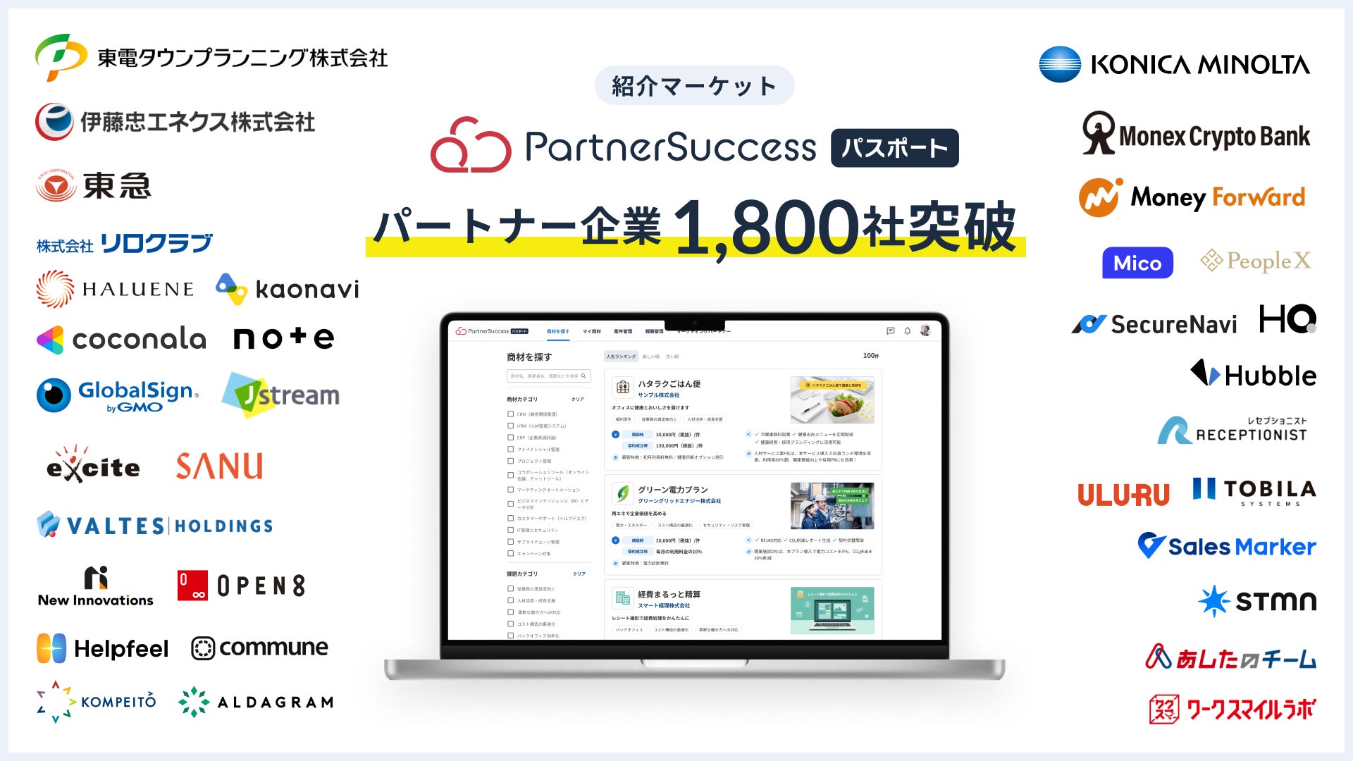 紹介マーケット「PartnerSuccess パスポート」、リリース1年でパートナー企業1,800社突破