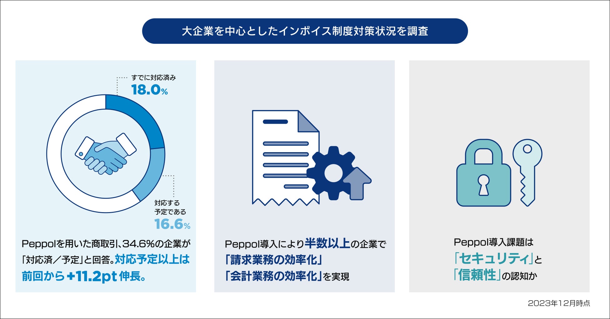 Peppolを用いた商取引、34.6%の企業が「対応済/予定」と回答。対応予定以上は前回から+11.2pt伸長。