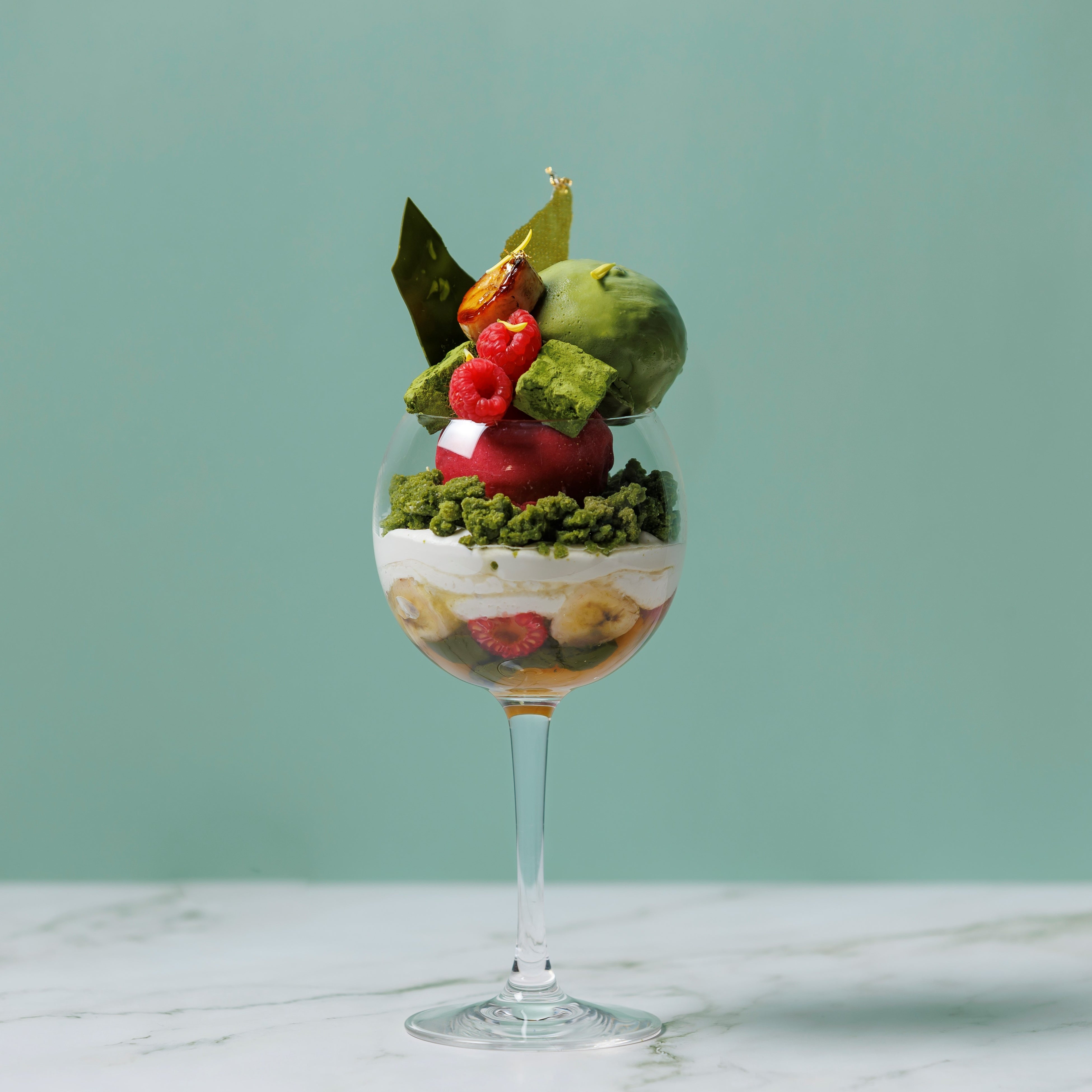 上から下まで宇治抹茶を贅沢にたっぷり使用した、GOOD NATURE STATIONの1階にある「ERUTAN」で提供されている『抹茶のパフェ』。ただ抹茶を使用するだけではなく、抹茶の香り、渋み、旨味を存分に引き出すのが「クリームチーズ」と酸味ある夏のフルーツの代表格でもある「フランボワーズ」と「パッションフルーツ」。そこに「バナナ」の旨味が調和されています。中心には、庭園をイメージした抹茶クランブルも配置されていて、味も見た目も楽しめるひんやりスイーツです。