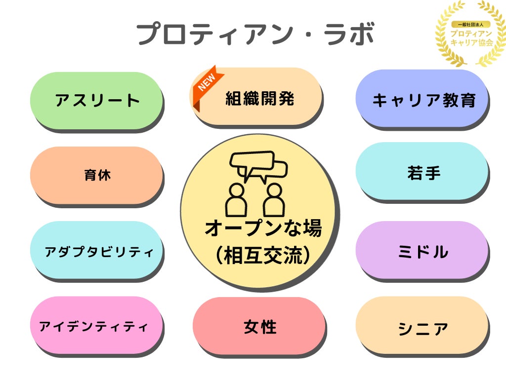 2021年に設立以来、キャリア教育、若手、ミドル、シニア、アイデンティティ、アダプタビリティ、育休、女性、アスリート、組織開発ラボの合計10のラボで活動しています。
