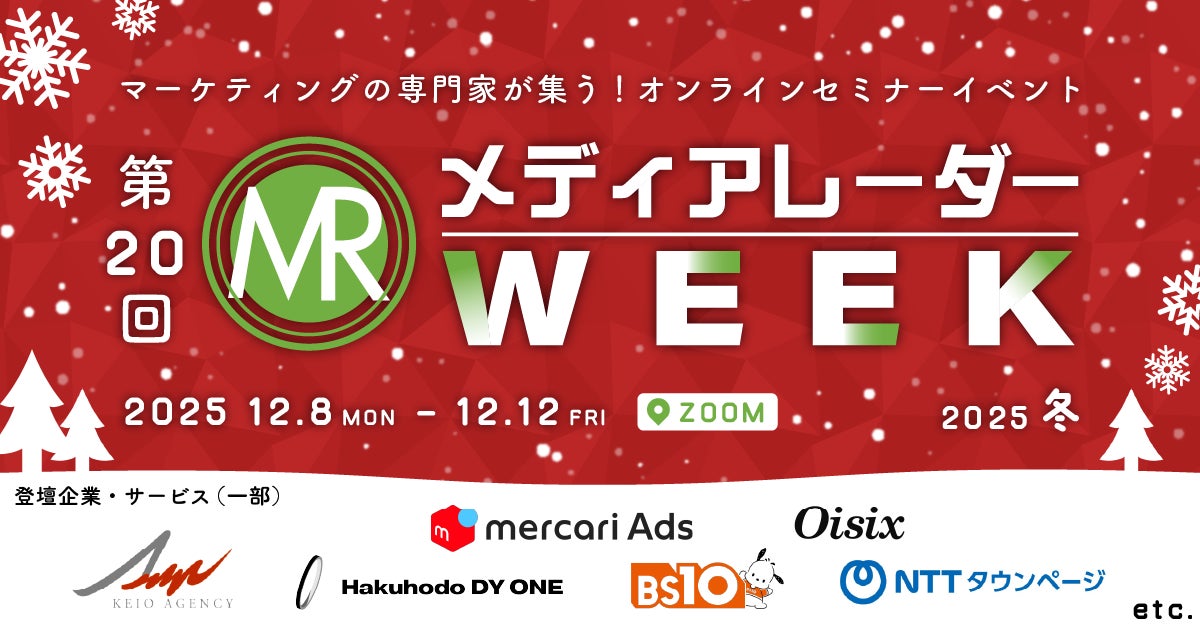 *出典:株式会社アイズ PR TIMES【メルカリ・NTTタウンページ登壇!】大型セミナーイベント「第20回メディアレーダーWEEK 2025 冬」開催決定