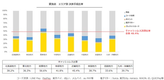 また、食事系、軽食、持ち帰りでのコード決済比率の割合が10%以上となる。