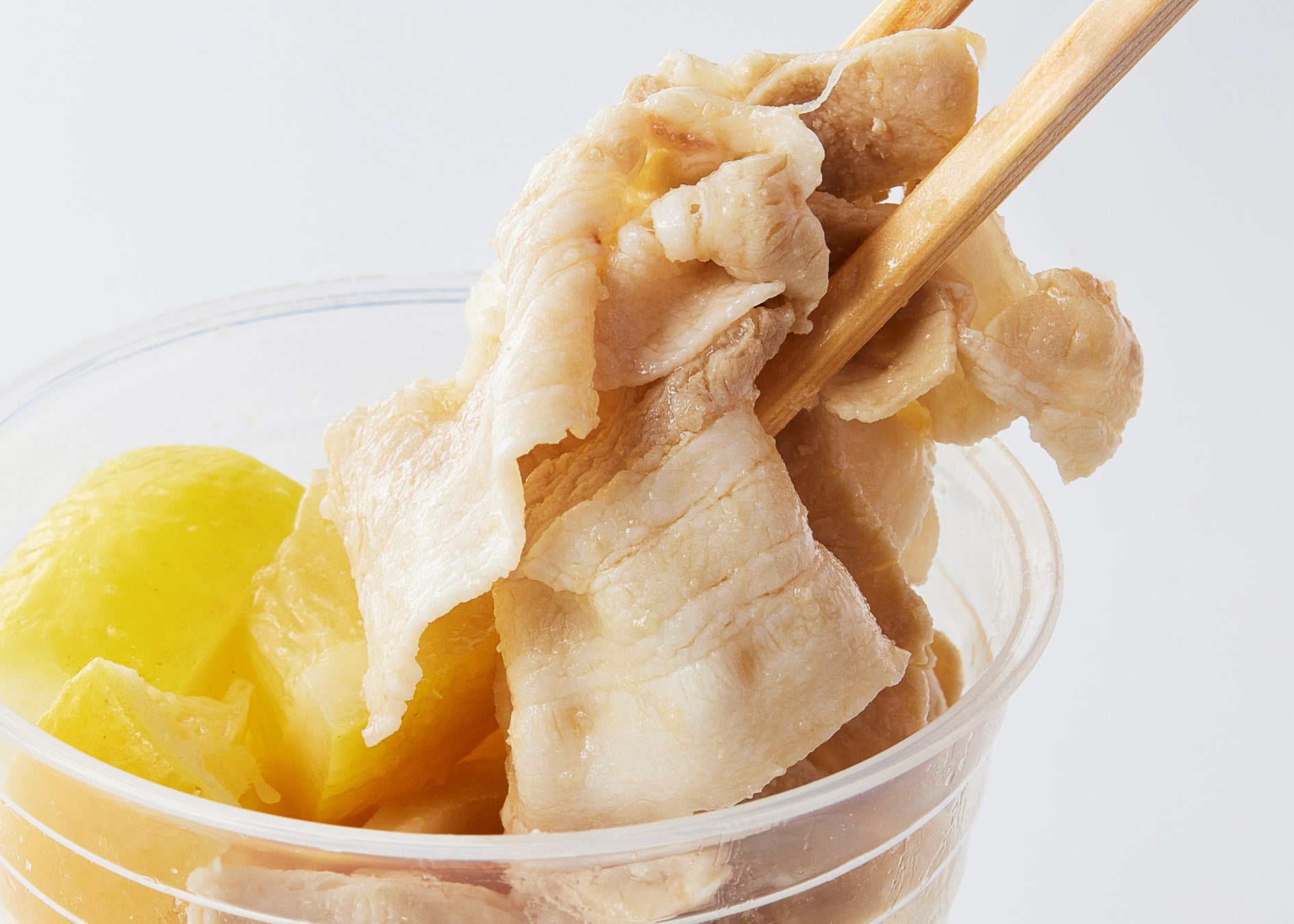 【こだわり①】 ガツンとした味わいがクセになるやわらかな豚しゃぶでボリューム満点
