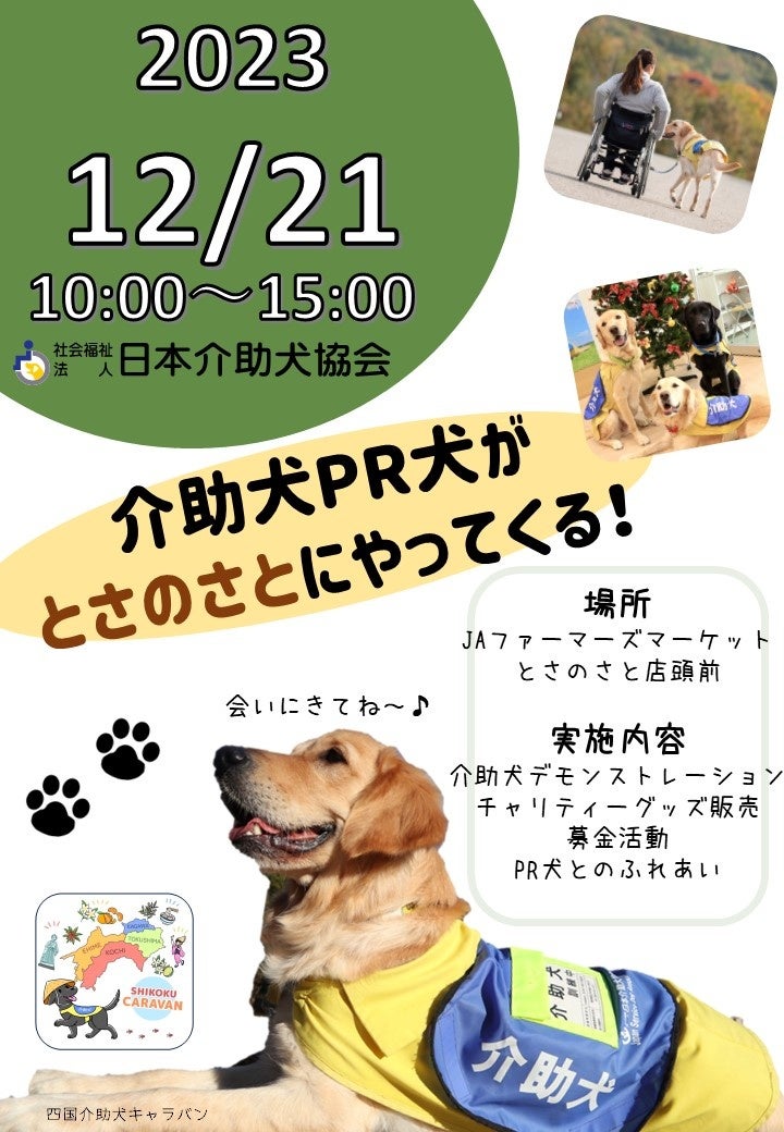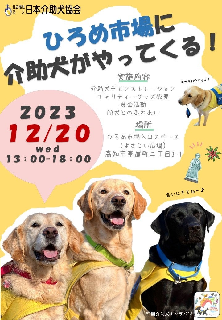 (社福)日本介助犬協会(以下、協会)が12月20日(水)21日(木)の2日間で高知県内の施設、「ひろめ市場」と「JAファーマーズマーケットとさのさと」で介助犬イベントを開催する。
