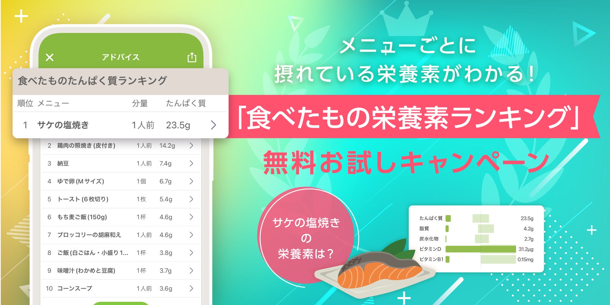 ■「食べたもの栄養素ランキング」無料お試しキャンペーン実施