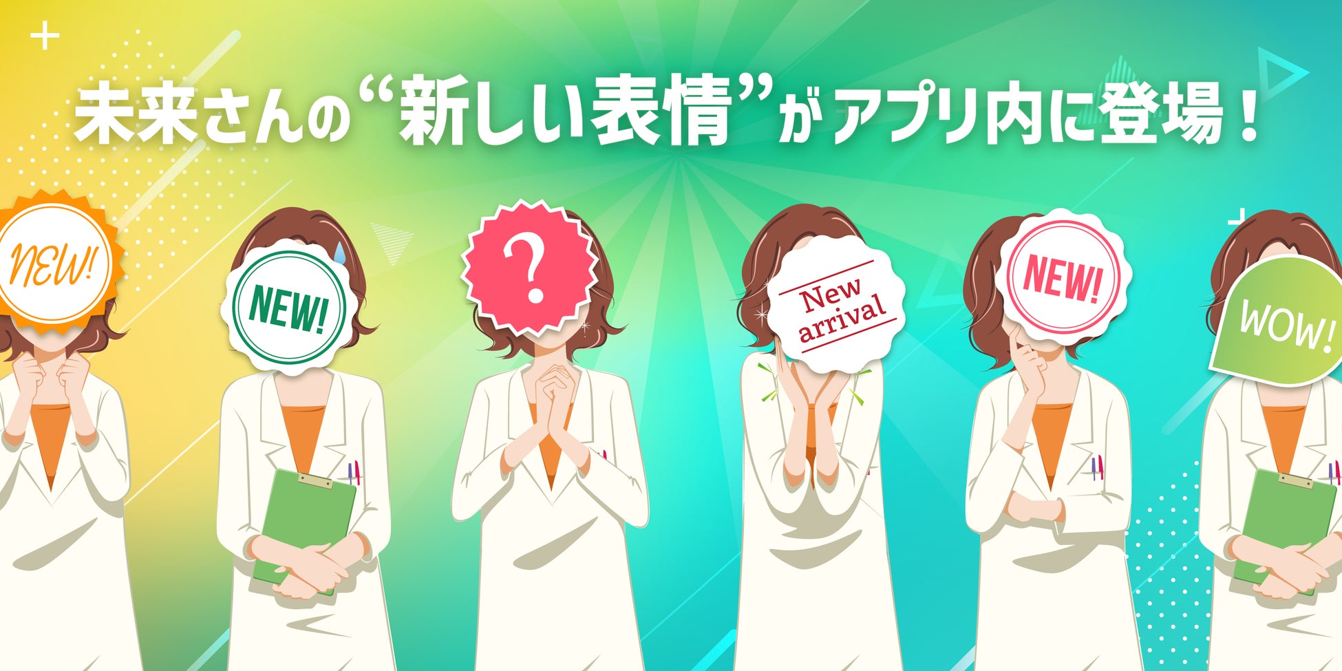 『あすけん』アプリに、新しい表情の未来さんが登場します!どんな新しい表情が公開されるのか、お楽しみにお待ちください。
