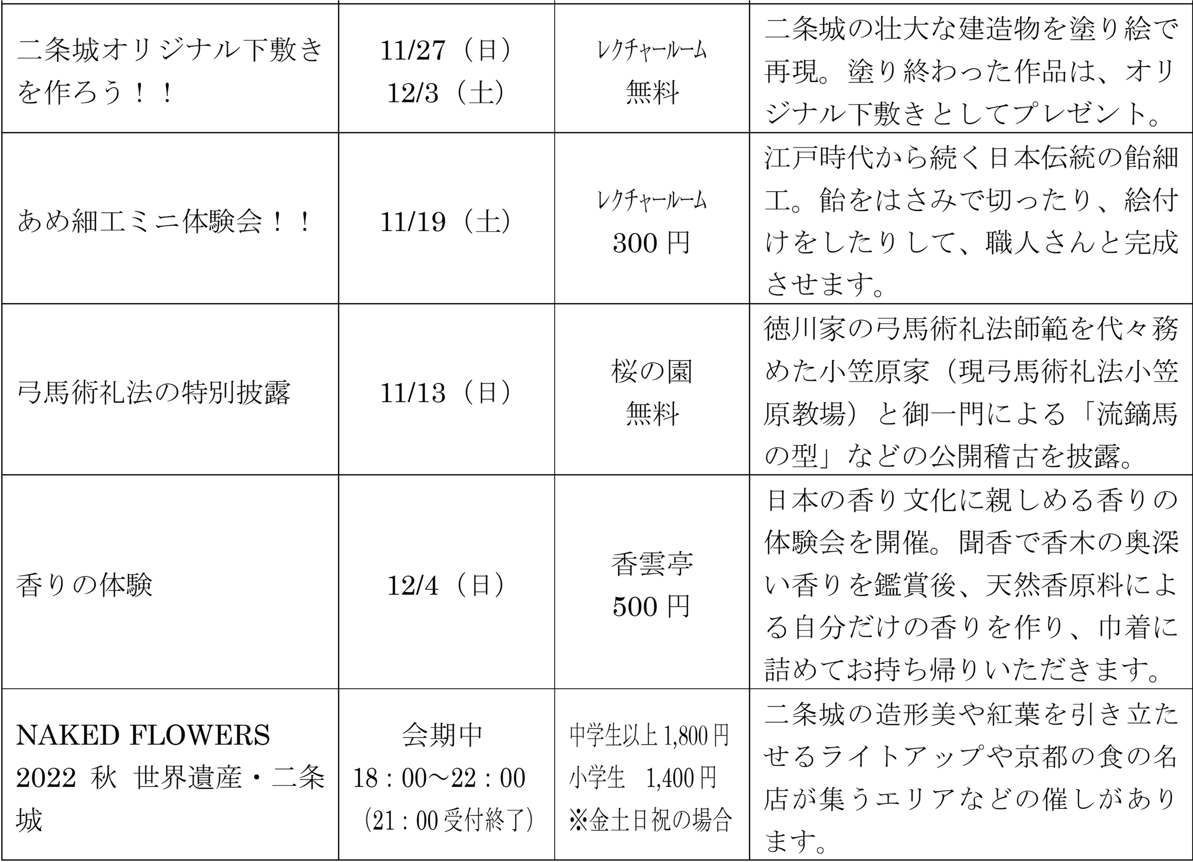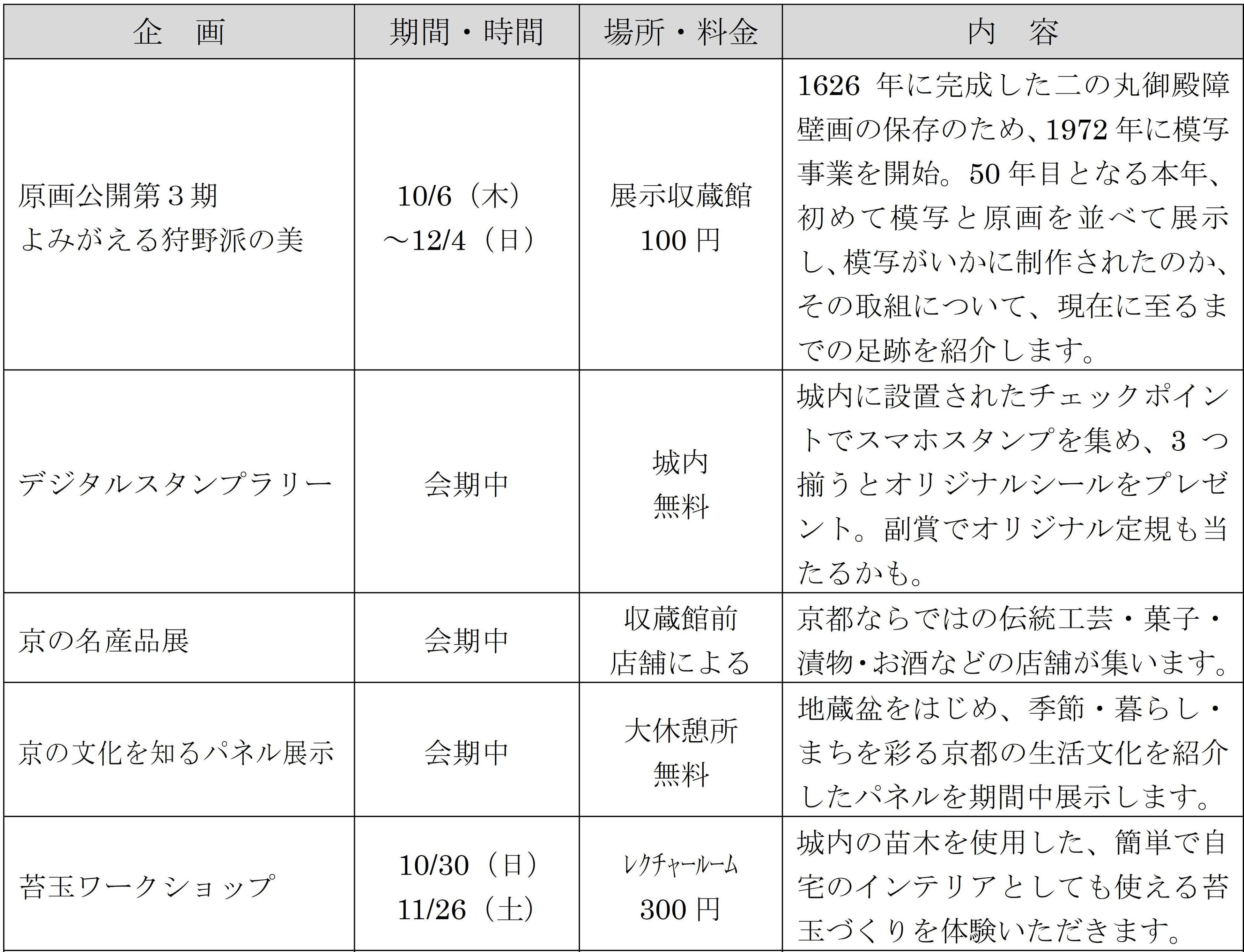 新型コロナウイルス感染症対策にも留意しながら、秋の二条城を満喫していただける催しを準備して、皆様の御来場をお待ちしています。