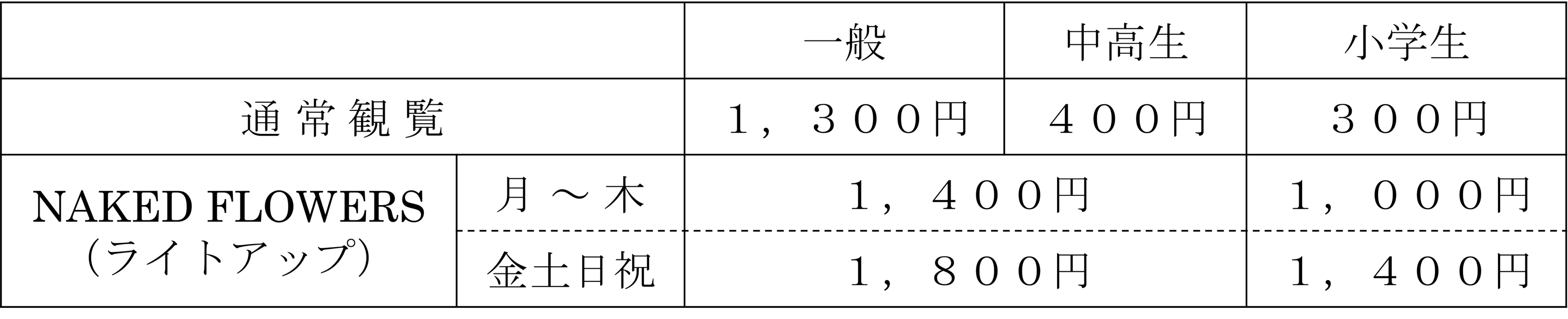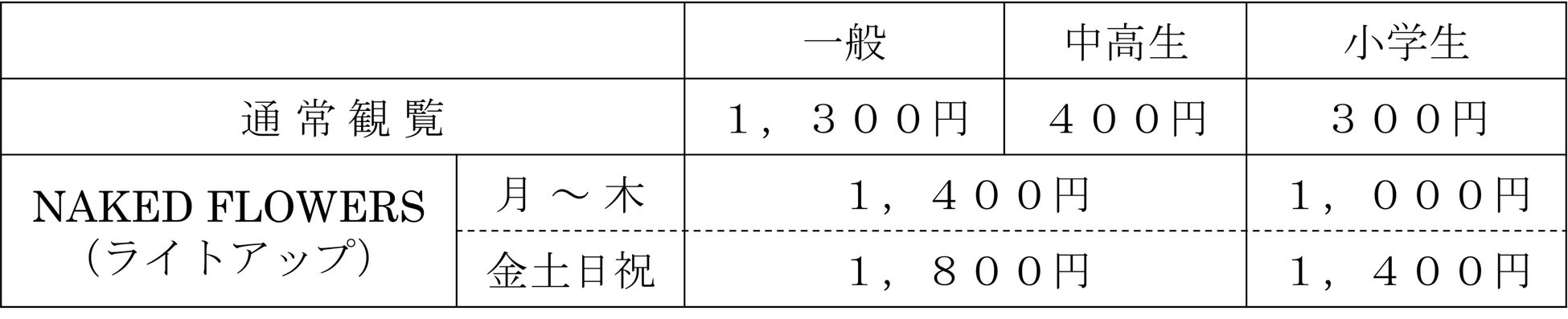 ※通常観覧とNAKED FLOWERS(ライトアップ)は入替制となります。