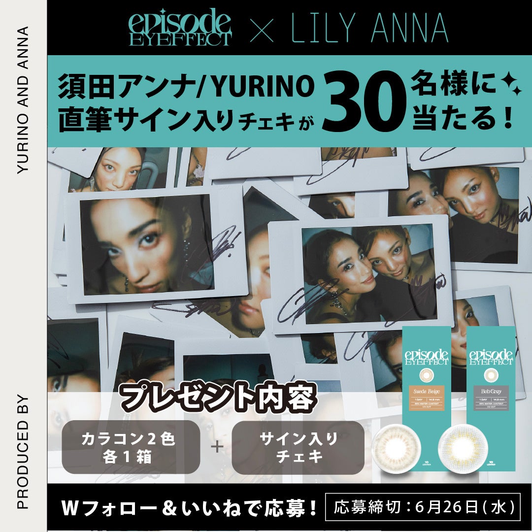 ①episode EYEFFECT公式Instagram(@episode.eyeffect)とLILYANNA公式Instagram(@lilyanna.jp)をWフォロー