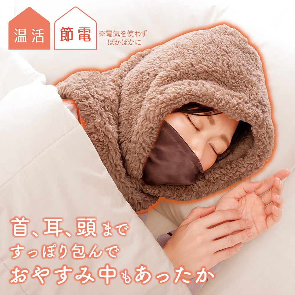 首、耳、頭まですっぽり包んでおやすみ中もあったか。