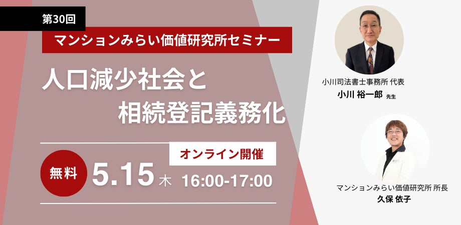 『人口減少社会と相続登記義務化』5月15日(木) 無料WEBセミナー(マンションみらい価値研究所主催)