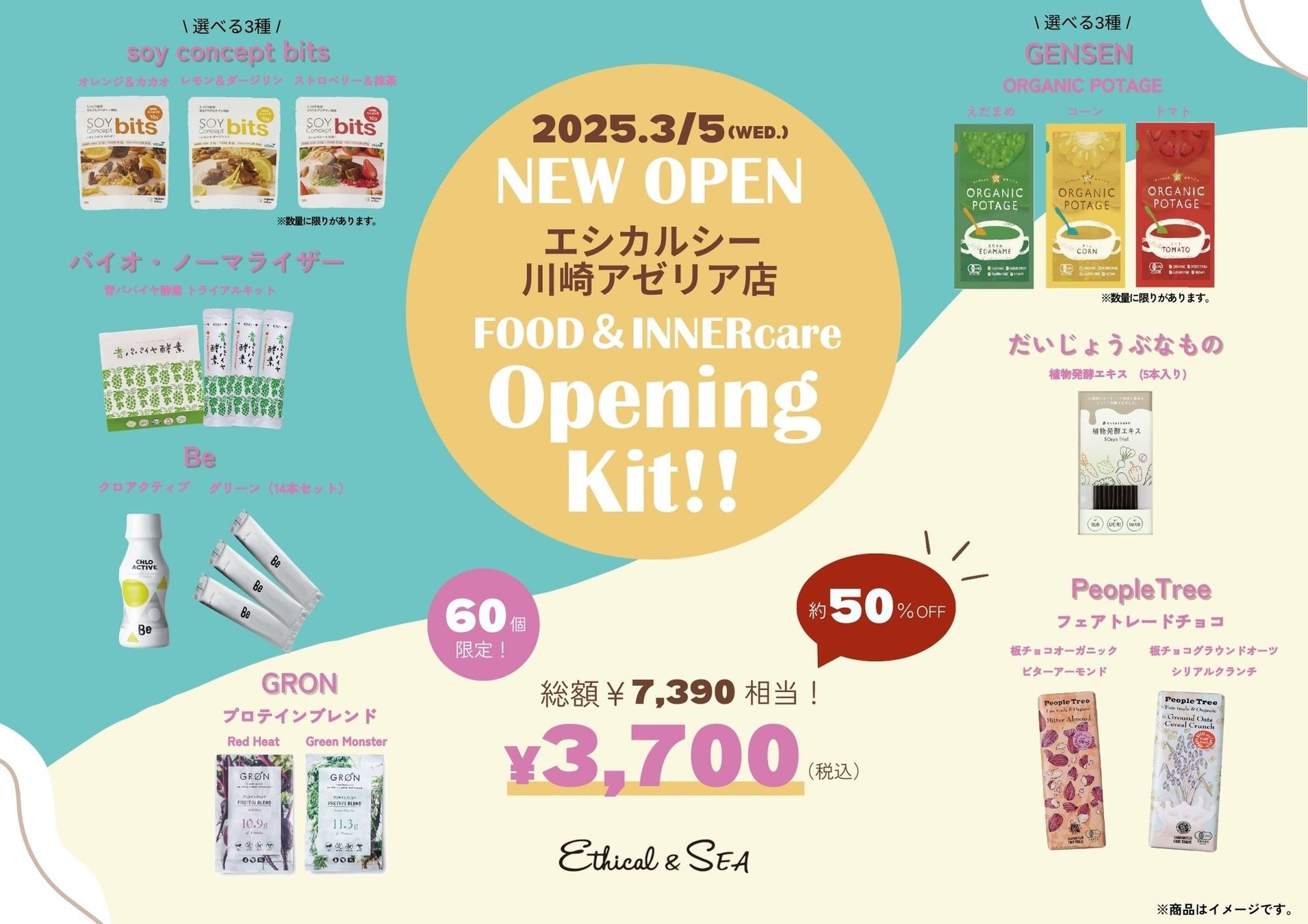 オープンを記念し、ブランドコンセプトに込められた思いをお伝えしたく、地球にも自分にもやさしい商品を限定キットにいたしました。