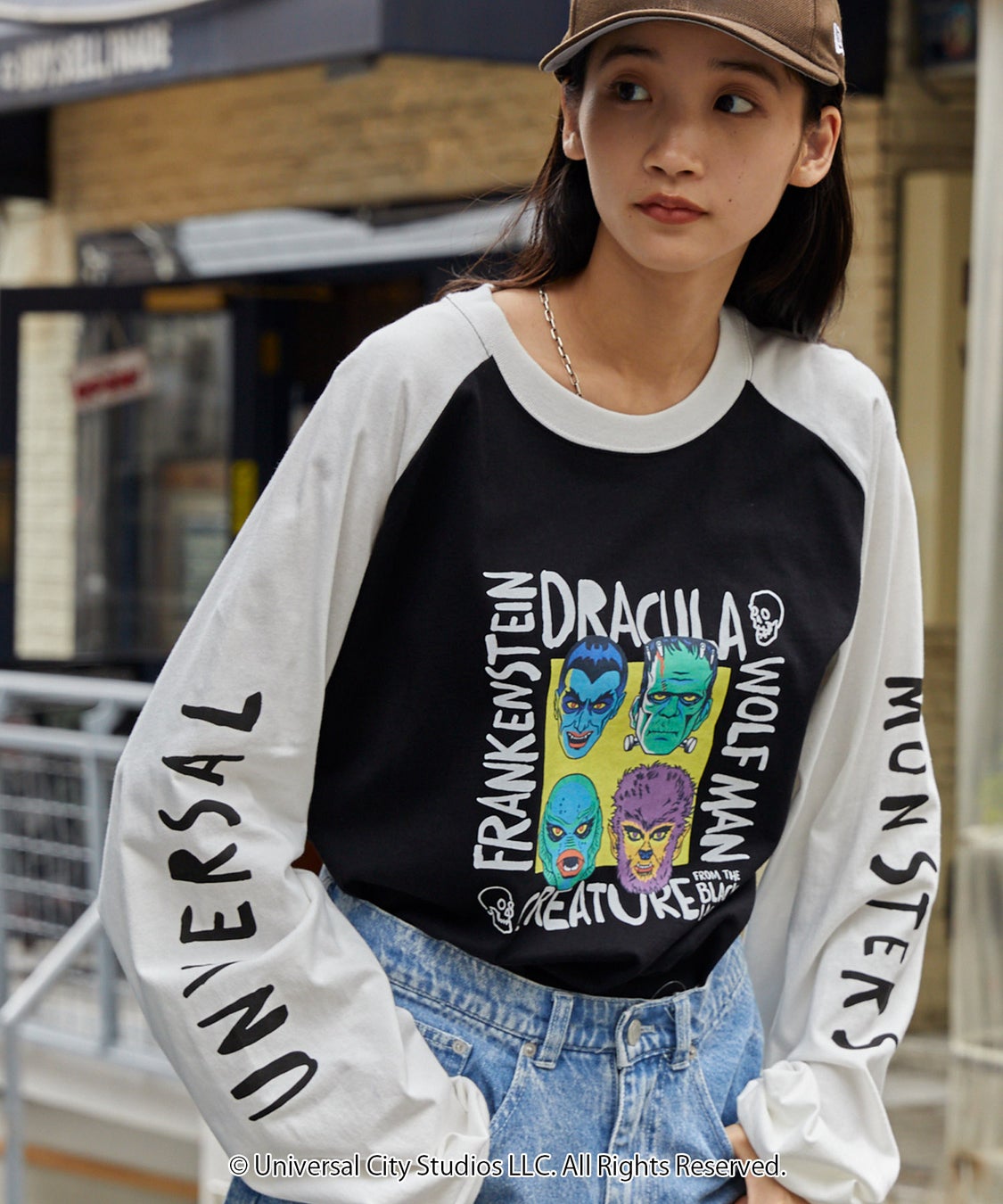 [商品名]【universal monster】アメコミ風モンスターラグランロンT
