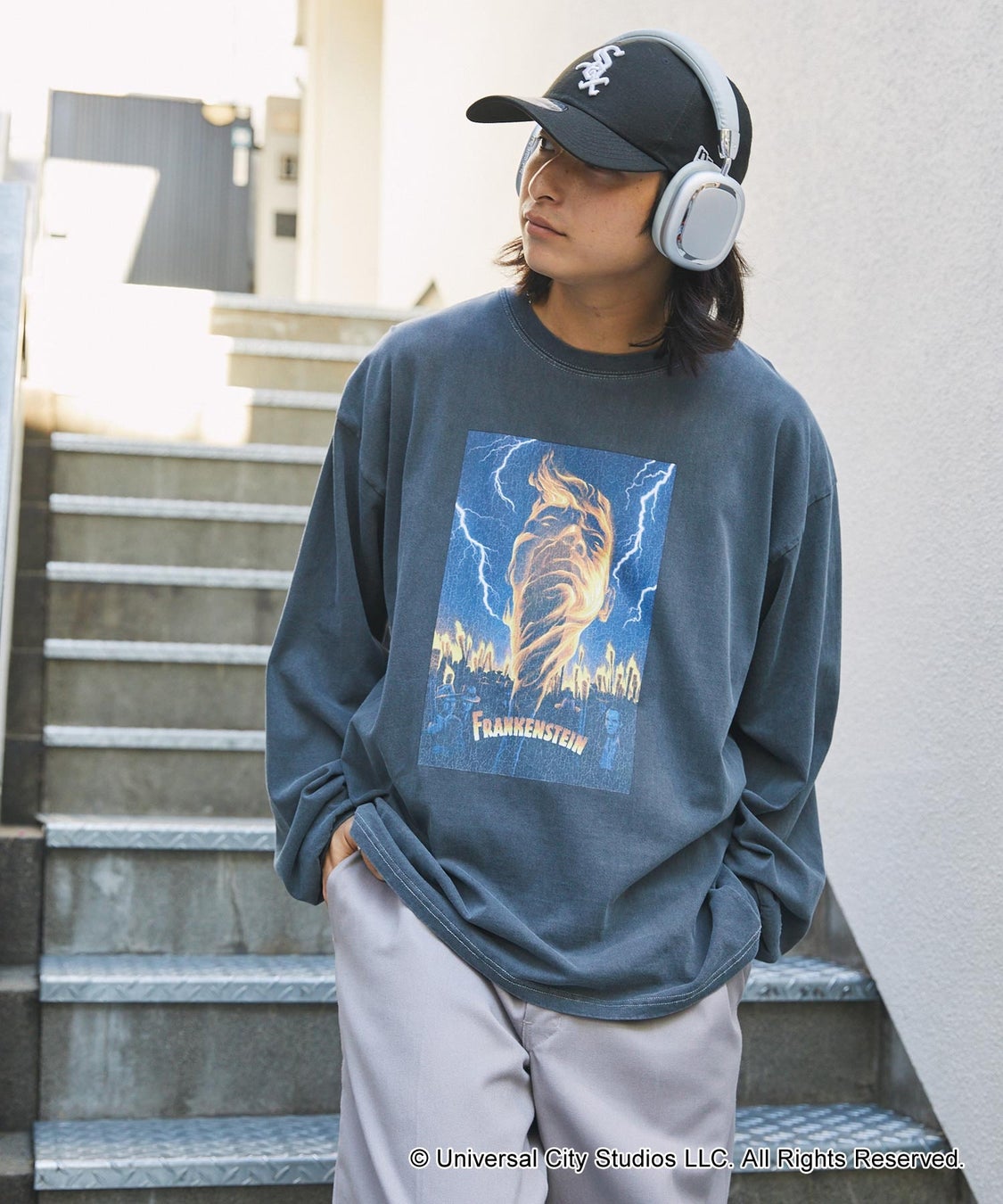 [商品名]【universal monster】モンスターロックデザインピグメントロンT