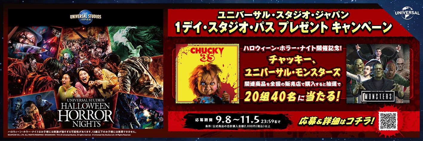 ハロウィーン・ホラー・ナイト開催を記念して、ユニバーサル・スタジオ・ジャパン“1デイ・スタジオ・パス”が抽選で20組40名様に当たるプレゼントキャンペーンを全国で実施!