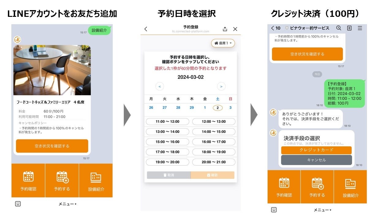 株式会社小田急SCディベロップメント(本社:東京都新宿区 取締役社長:細谷 和一郎)が運営する商業施設「ビナウォーク」では、2024年3月2日(土)より、ビナウォーク3番館1Fフードコート内の一部エリアにて、「キッズ&ファミリーエリア LINE座席予約サービス」を開始します。
