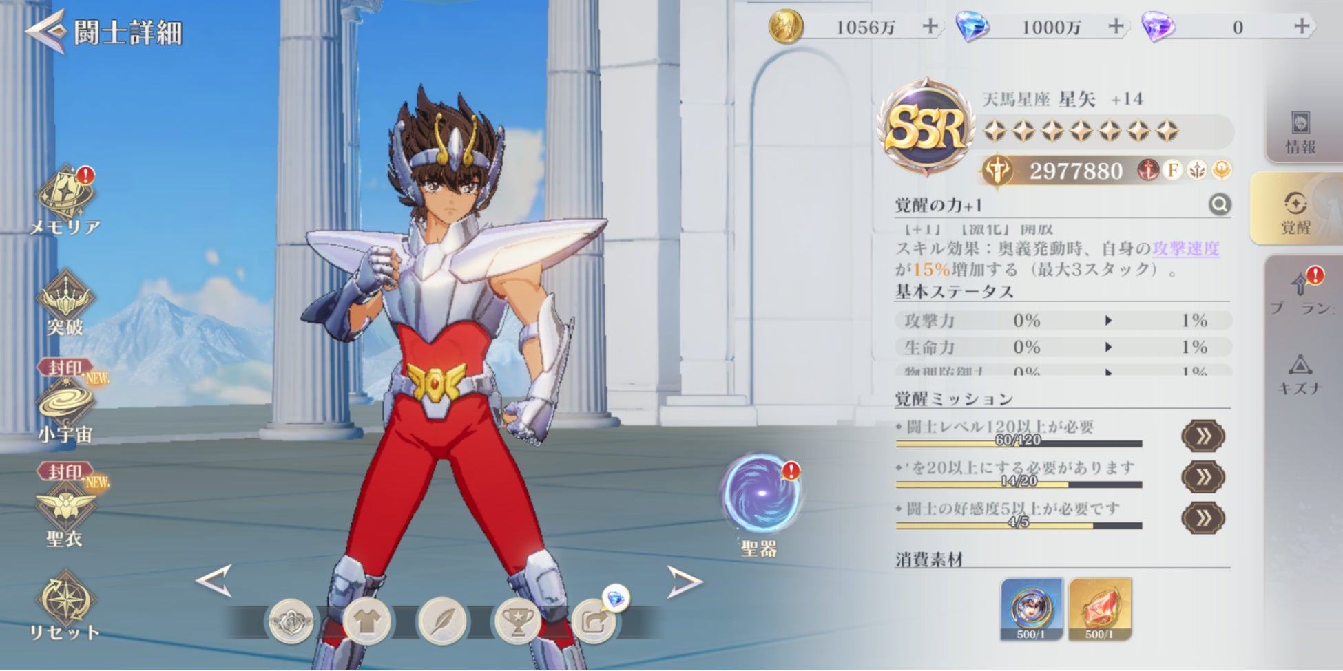入り口:メイン画面⇒闘士⇒覚醒