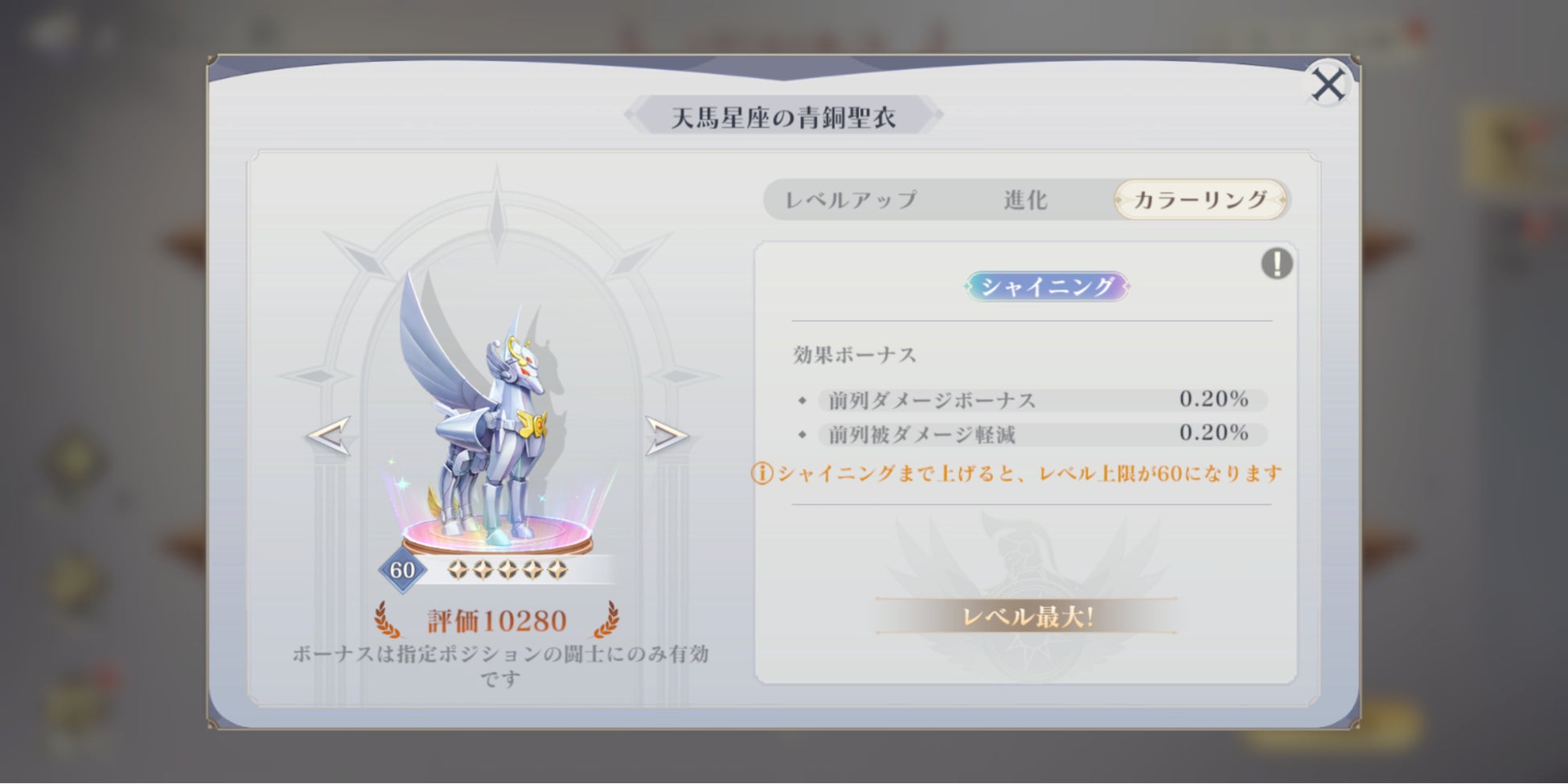 フィギュアのカラーリングによって特殊なステータスボーナスを得られるほか、フィギュアレベルの上限を上げることができます。