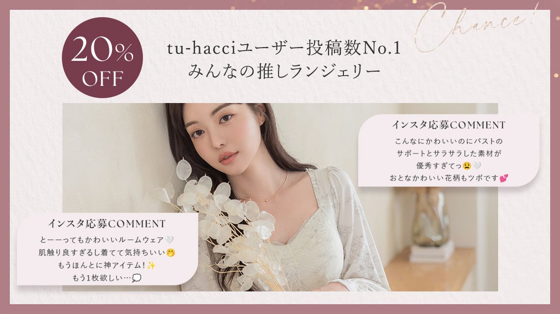 『不動の人気No.1補正ブラ』や、『SNSで話題の24H使えるナイトブラ』などtu-hacciのベストセラーアイテムがお得にGETできるチャンスをお見逃しなく!