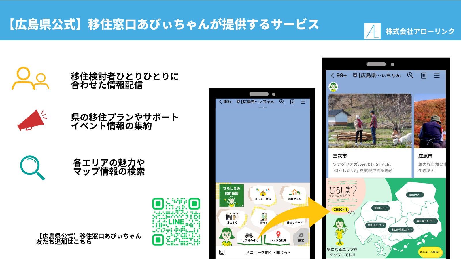 LINE公式アカウント:【広島県公式】移住窓口あびぃちゃんの主な特徴