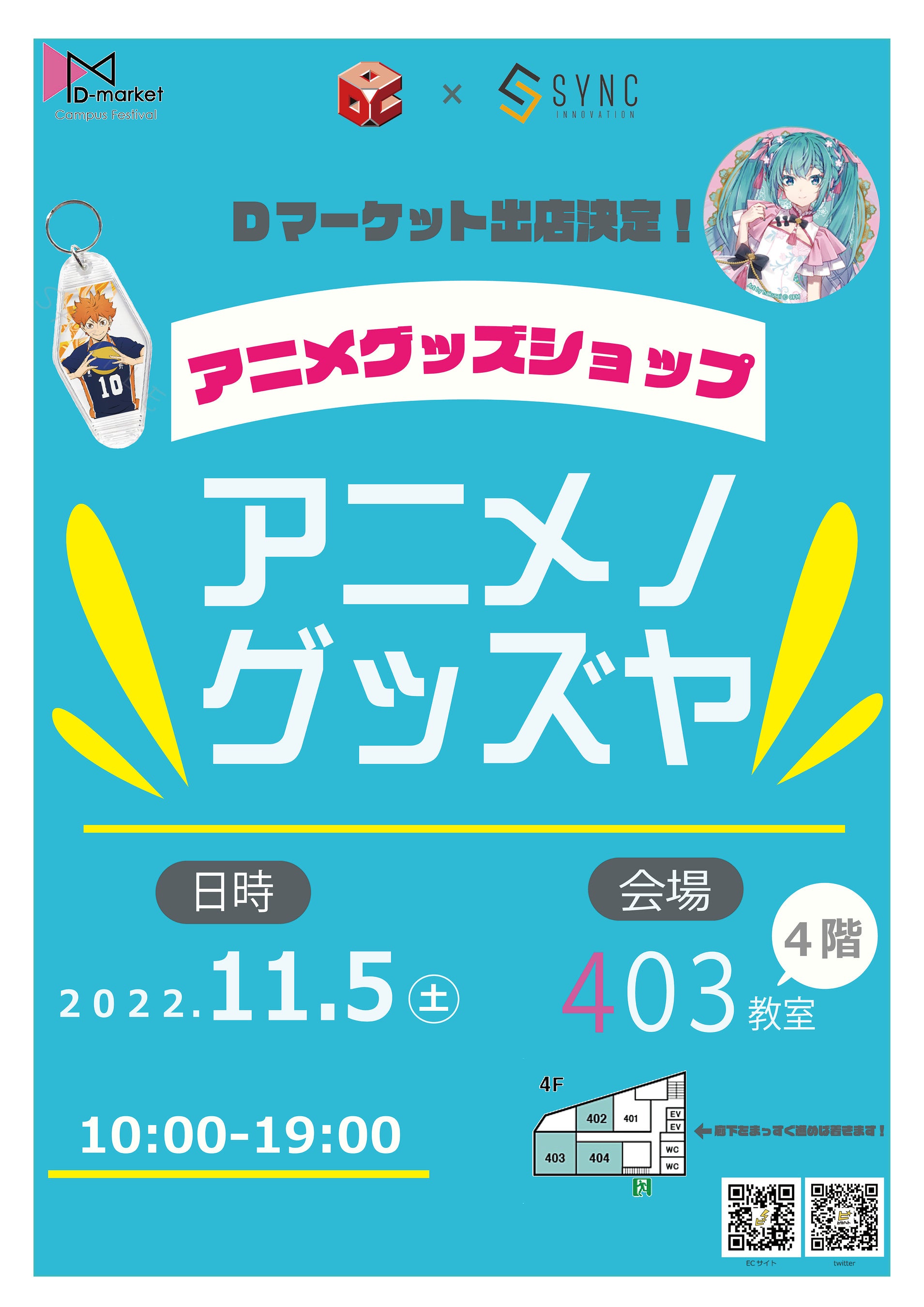 当日は店名「アニメノグッズヤ」として、教室をお借りして弊社のグッズを販売!