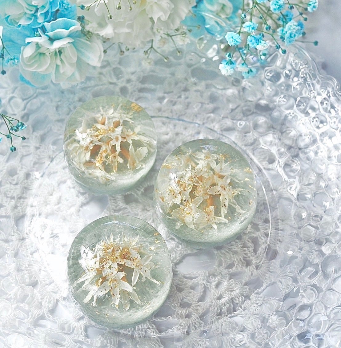 ・表面には金箔製剤をあしらい、光を反射してきらめくまさに“食べられる夢”。