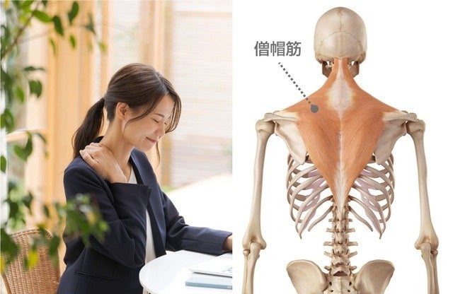 毎日の仕事や家事で、首や肩に疲れを感じる・・・という方は、頭・首・肩・肩甲骨をつなぐ大きな筋肉である僧帽筋が原因かもしれません!僧帽筋は、日常生活の中で首の曲げ伸ばしや、腕を上げたり下ろしたりするのに非常に大切な筋肉です!だからこそ、僧帽筋が固まると首・肩・背中にハリを感じやすくなります。