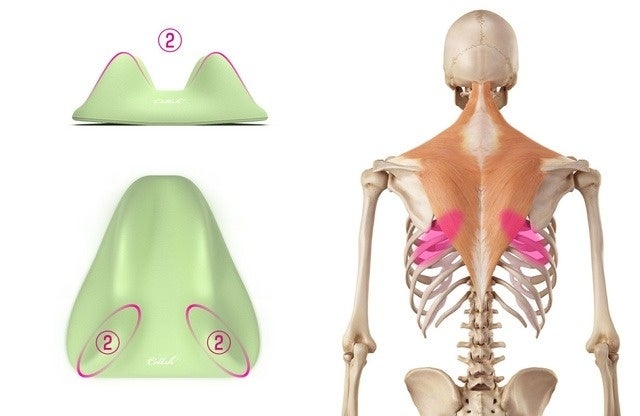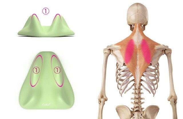 Cellsh肩甲骨ストレッチクッションなら、特殊な八の字突起がそれらの筋肉をグイっとピンポイントに刺激してくれます!