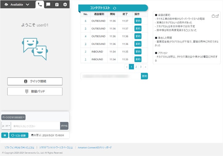 アマゾン ウェブ サービス(以下:AWS)のAWSプレミアティア サービスパートナーである株式会社サーバーワークス(本社:東京都新宿区、代表取締役社長:大石 良、以下:サーバーワークス)は、自社開発したAmazon Connectのカスタムソフトフォン「クラウドコンタクトワークスペース」の会話要約機能が、Amazonの提供する最新基盤モデル「Amazon Nova Pro」に対応したことをお知らせします。