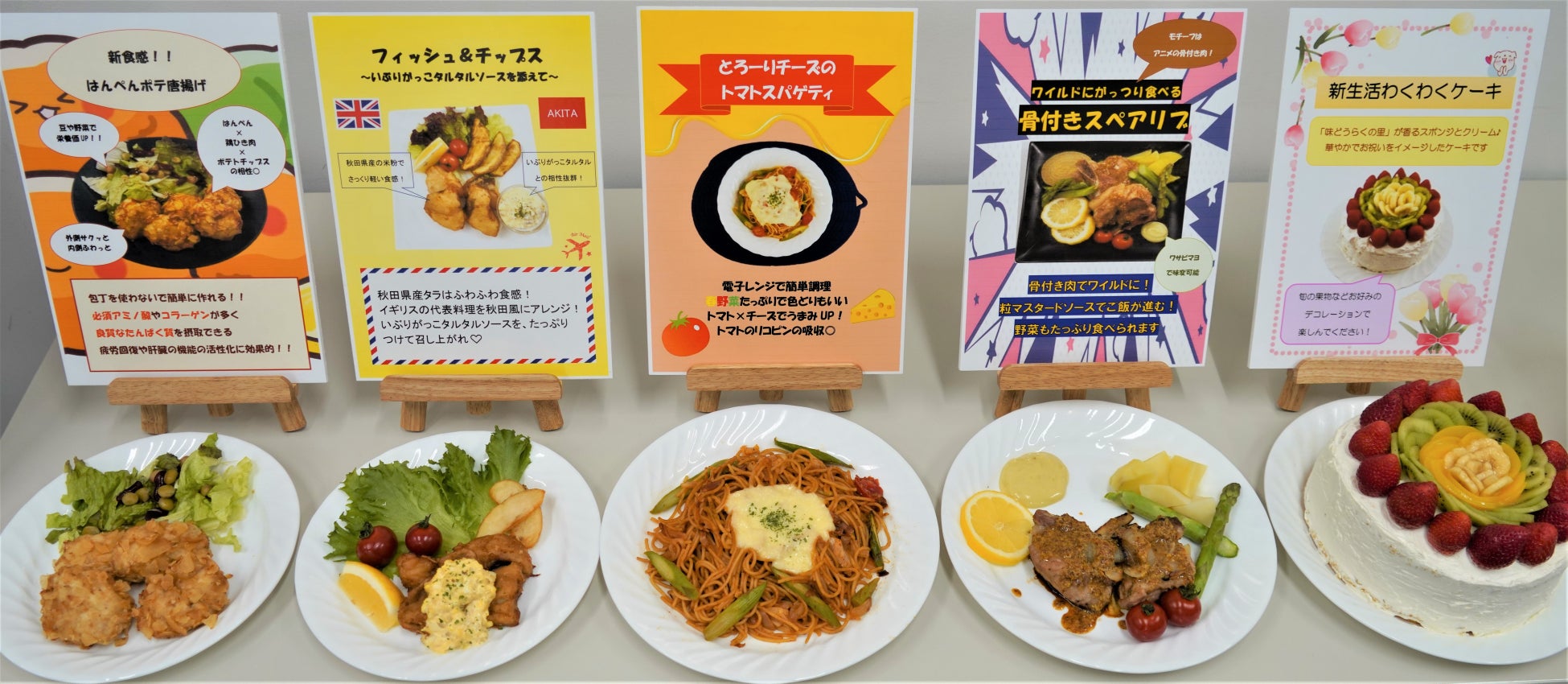 実食体験会開催にあたり、秋田栄養短期大学様にご協力いただき「卒業・入学シーズンにピッタリなパーティーレシピ」というテーマで、学生の皆さまに考案いただいたレシピは計10品。その中から「唐揚げ部門」、「春のパーティーレシピ部門」として選考された5品が実食会で提供されました。