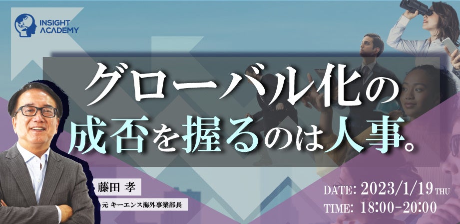 グローバル⼈材育成・研修業を⼿掛けるインサイトアカデミー株式会社(東京都港区、代表取締役:北村嘉章)は、2023年1月19日(木)18時より、無料webセミナー「グローバル化の成否を握るのは人事」を開催します。