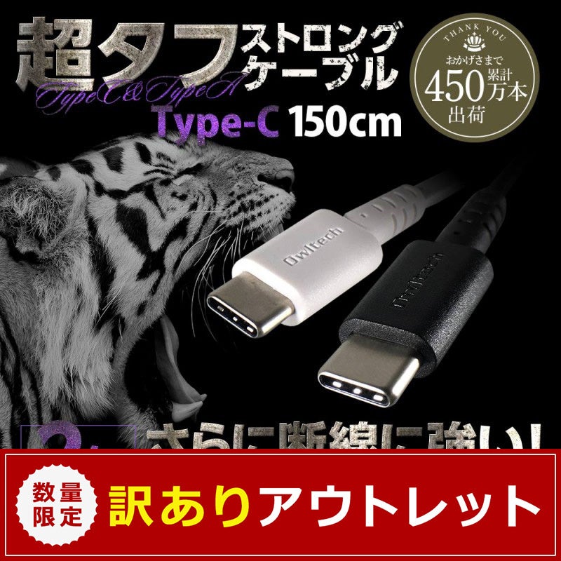 ②急速充電対応の超タフストロングケーブルUSB Type-A to Type-Cケーブル(OWL-CBKCA15)