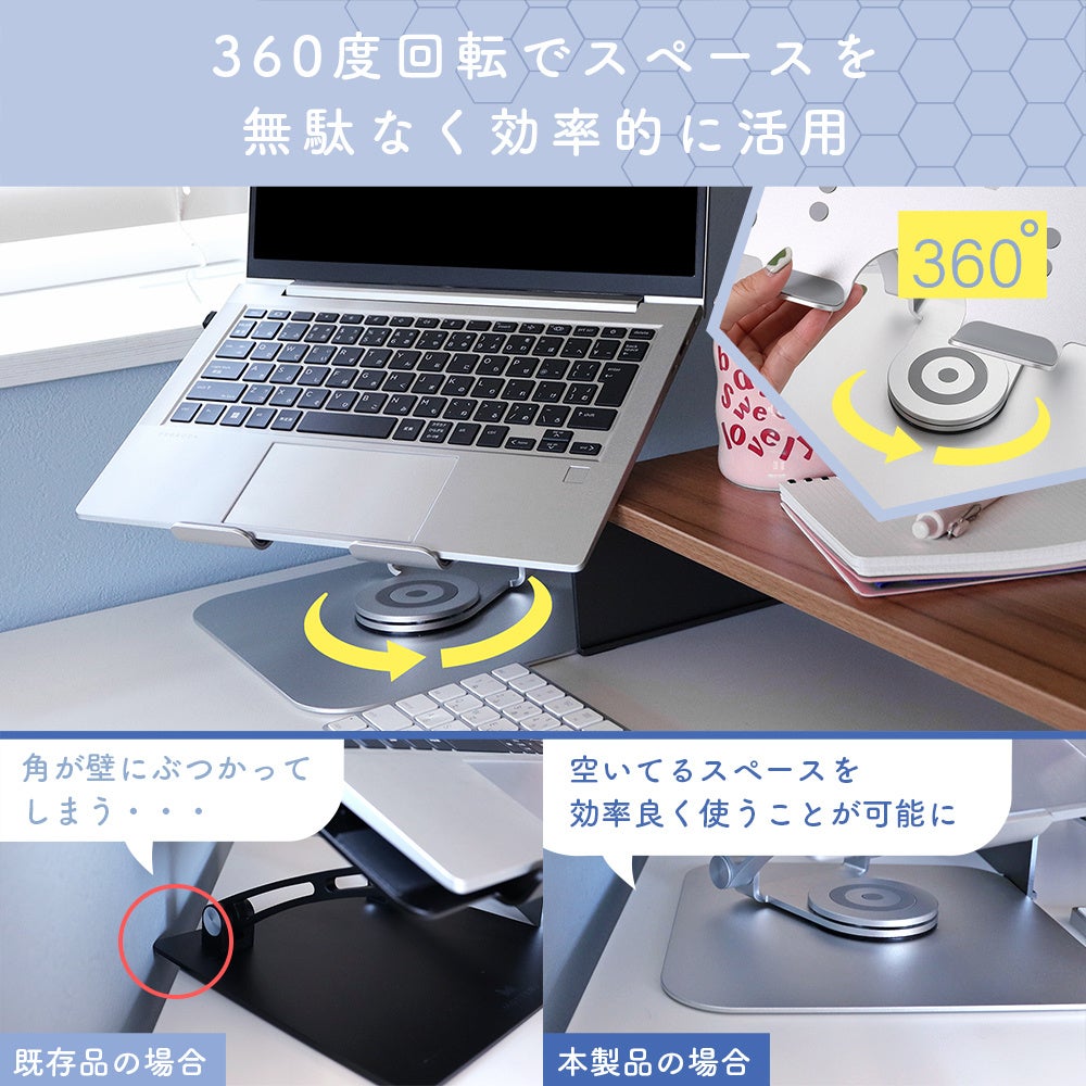 肩や背中への負担を軽減 360度回転ノートPCスタンド (MOT-PCSTD08) |